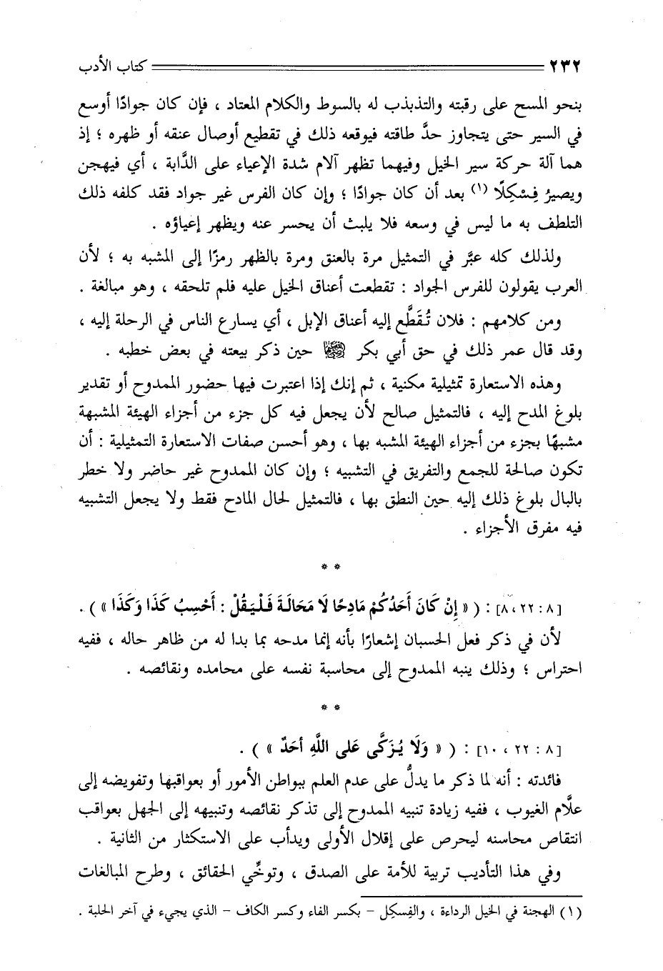 [8: 22، 8]: («إن كان أحدكم مادحاً لا محالة فليقل: أحسب كذا وكذا»).