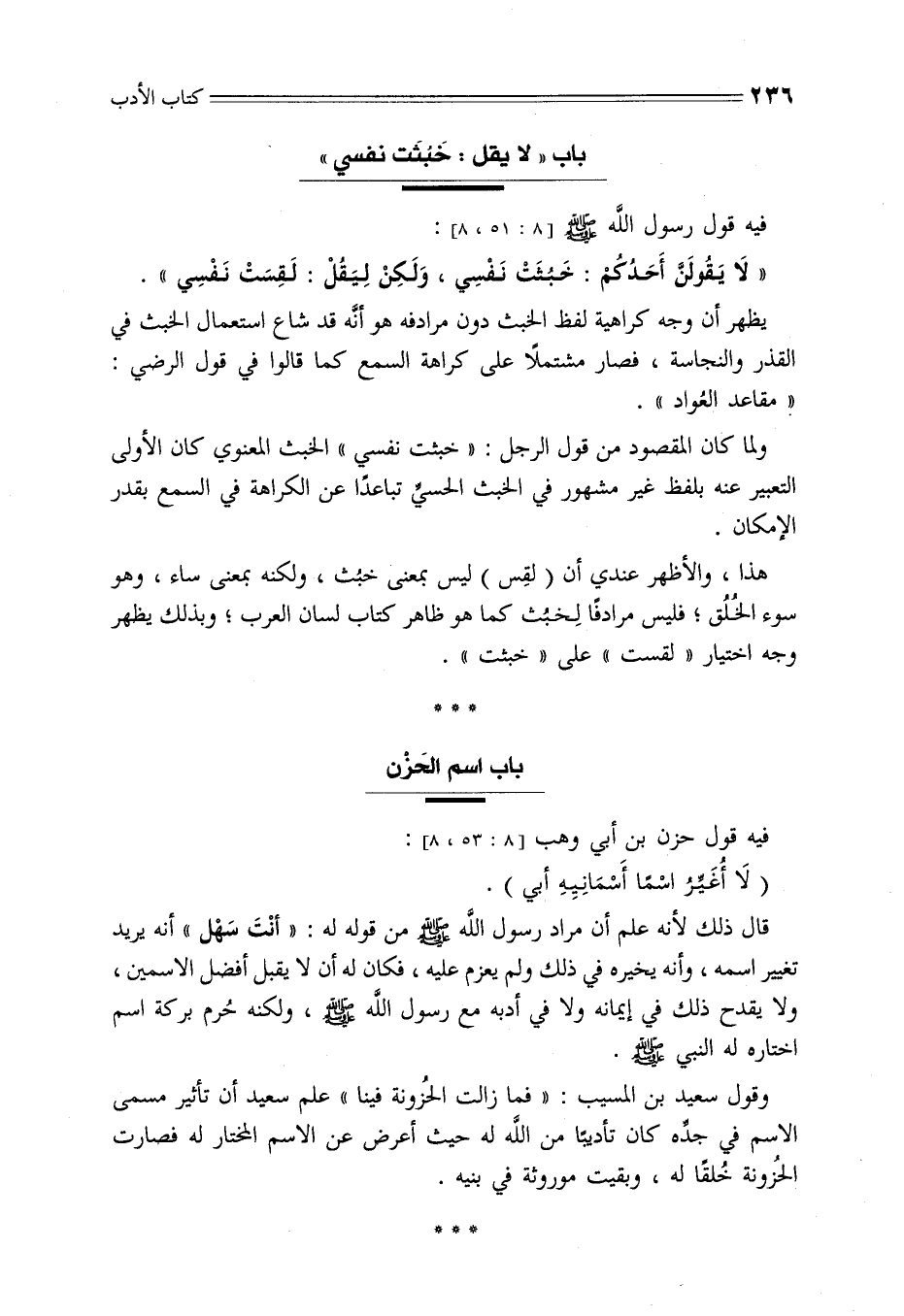 «لا يقولنَّ أحدكم: خبثت نفسي، ولكن ليقل: لقست نفسي».