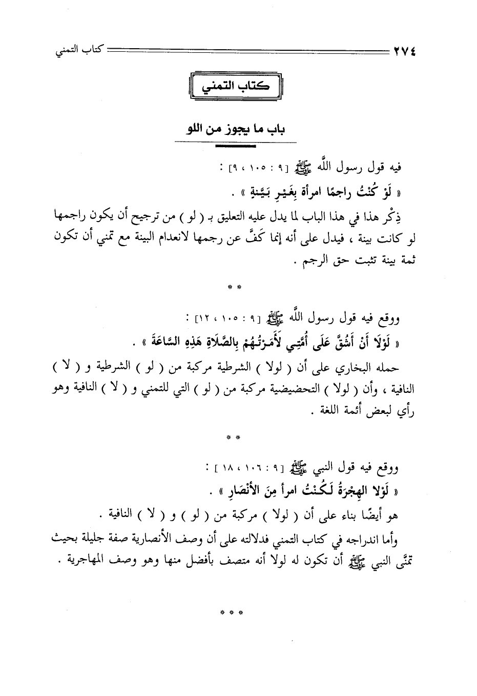 وأما اندراجه في كتاب التمني فدلالته على أن وصف الأنصارية صفة جليلة بحيث تمنَّى النبي - صلى الله عليه وسلم - أن تكون له لولا أنه متصف بأفضل منها وهو وصف المهاجرية.