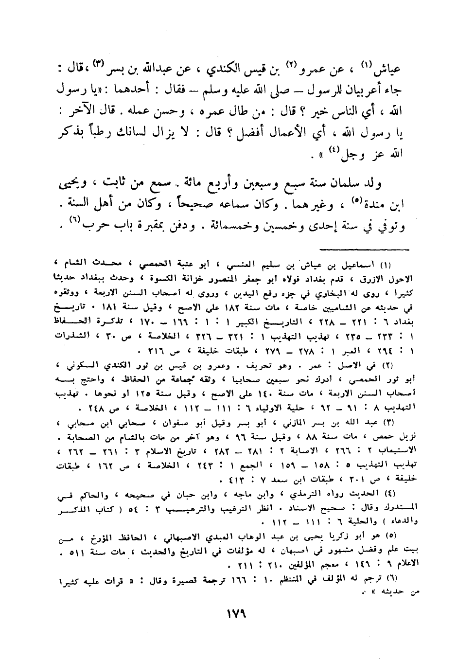 عَيَّاشٍ، عَنْ عَمْرِو بْنِ قَيْسٍ الْكِنْدِيِّ، عَنْ عَبْدِ اللَّهِ بْنِ بُسْرٍ، قَالَ: جَاءَ أَعْرَابِيَّانِ لِلرَّسُولِ صَلَّى اللَّهُ عَلَيْهِ وَسَلَّمَ فَقَالَ أَحَدُهُمَا: يَا رَسُولَ اللَّهِ، أَيُّ النَّاسِ خَيْرٌ؟ قَالَ: مَنْ طَالَ عُمْرُهُ، وَحَسُنَ عَمَلُهُ.