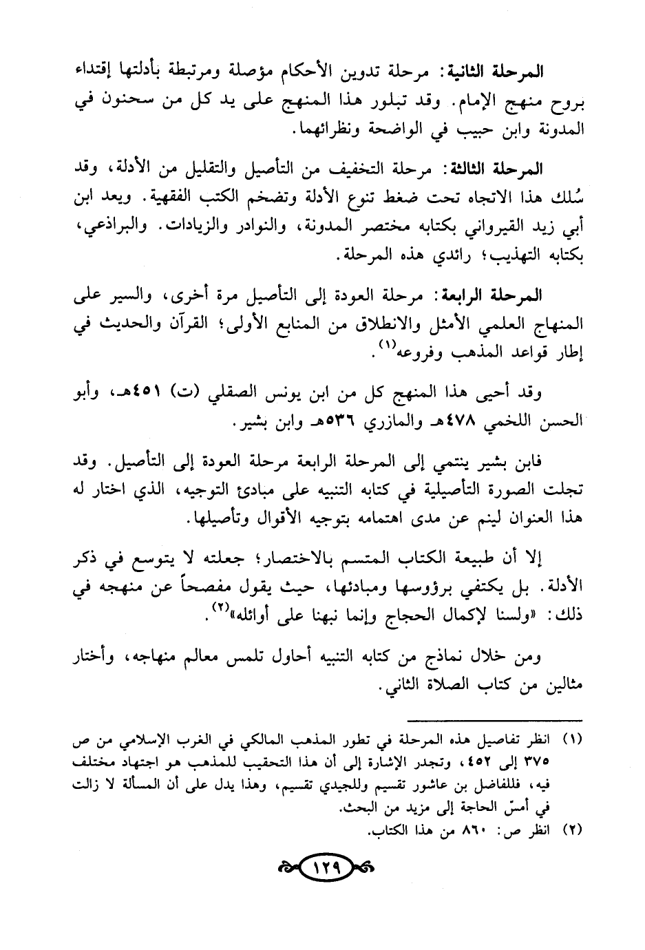 (¬1) انظر تفاصيل هذه المرحلة في تطور المذهب المالكي في الغرب الإسلامي من ص 375 إلى 452، وتجدر الإشارة إلى أن هذا التحقيب للمذهب هو اجتهاد مختلف فيه، فللفاضل بن عاشور تقسيم وللجيدي تقسيم، وهذا يدل على أن المسألة لا زالت في أمسّ الحاجة إلى مزيد من البحث.