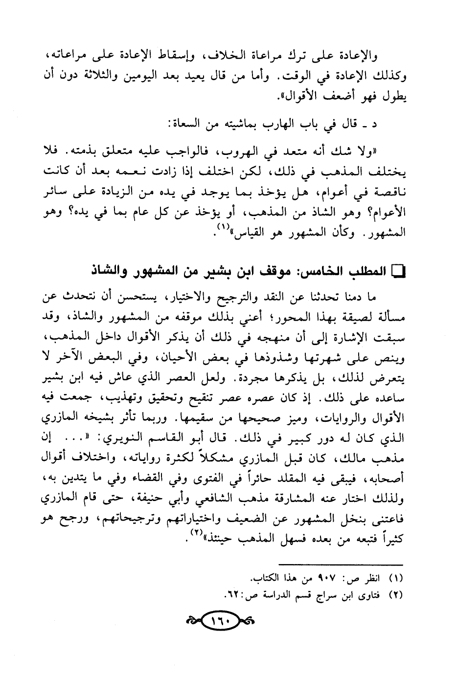 * المطلب الخامس: موقف ابن بشير من المشهور والشاذ