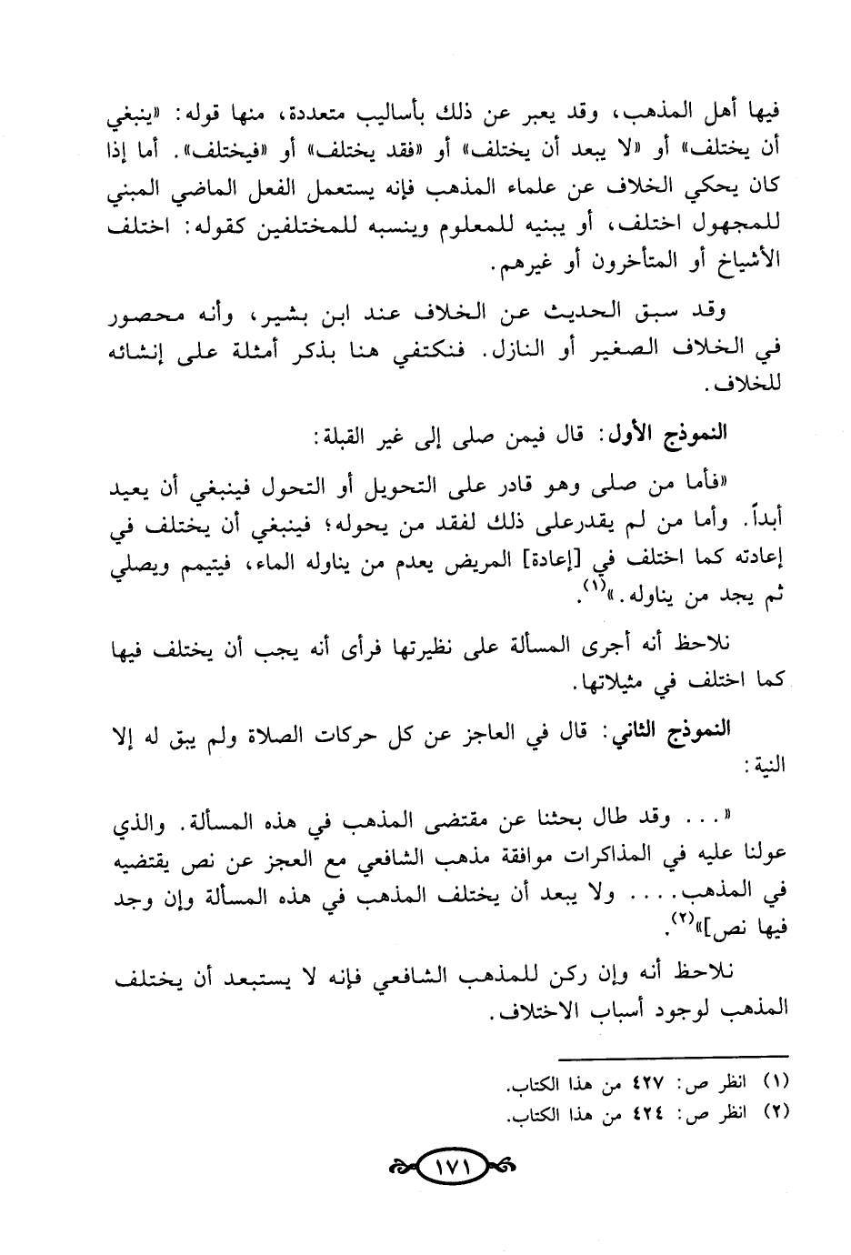 نلاحظ أنه وإن ركن للمذهب الشافعى فإنه لا يستبعد أن يختلف المذهب لوجود أسباب الاختلاف.