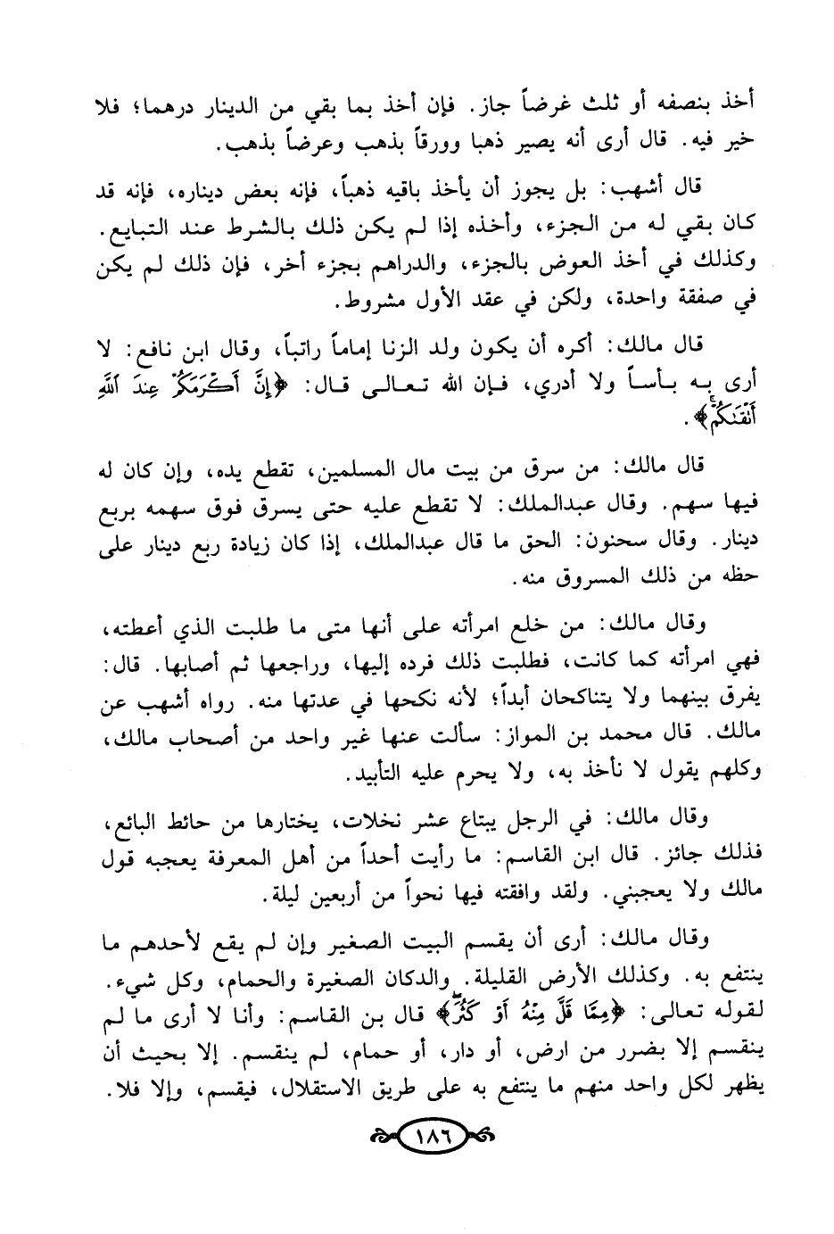 قال مالك: من سرق من بيت مال المسلمين، تقطع يده، وإن كان له فيها سهم. وقال عبد الملك: لا تقطع عليه حتى يسرق فوق سهمه بربع دينار. وقال سحنون: الحق ما قال عبد الملك، إذا كان زيادة ربع دينار على حظه من ذلك المسروق منه.