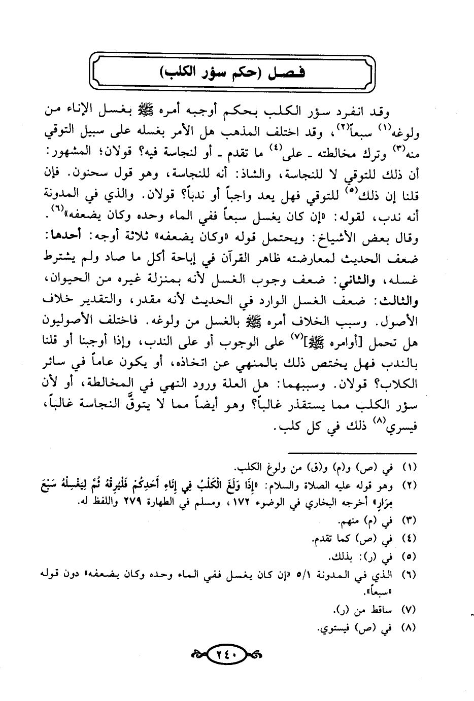 فصل (حكم سؤر الكلب)