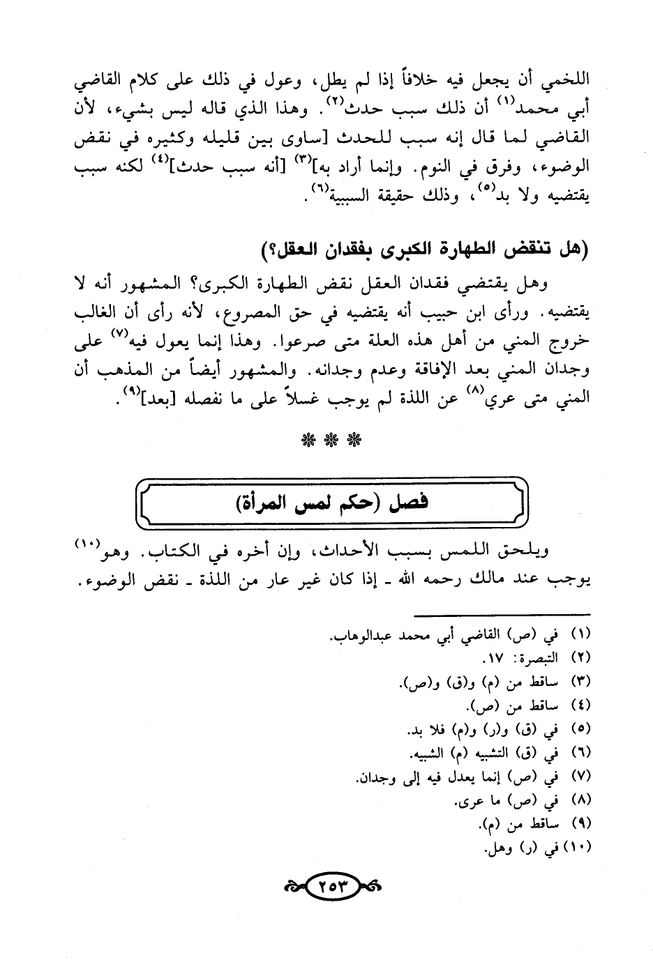 اللخمي أن يجعل فيه خلافاً إذا لم يطل، وعول في ذلك على كلام القاضي أبي محمد (¬1) أن ذلك سبب حدث (¬2). وهذا الذي قاله ليس بشيء، لأن القاضي لما قال إنه سبب للحديث [ساوى بين قليله وكثيره في نقض الوضوء، وفرق في النوم. وإنما أراد به] (¬3) [أنه سبب حدث] (¬4) لكنه سبب يقتضيه ولا بد (¬5)، وذلك حقيقة السببية (¬6).