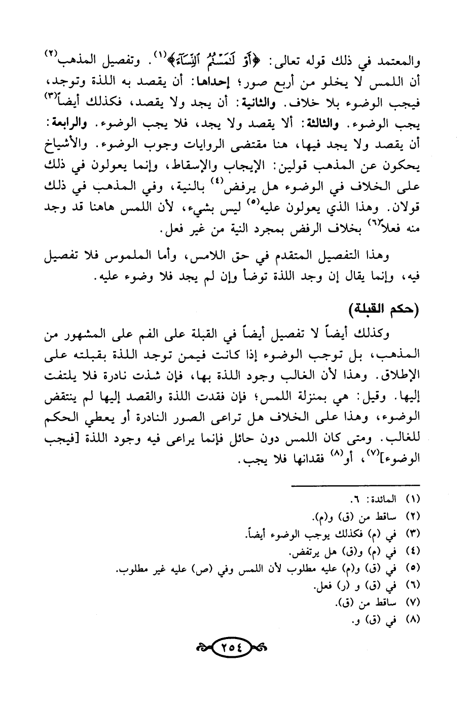 (¬5) في (ق) و (م) عليه مطلوب لأن اللمس وفي (ص) عليه غير مطلوب.