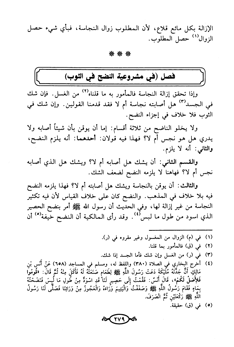 فصل (في مشروعية النضح في الثوب)
