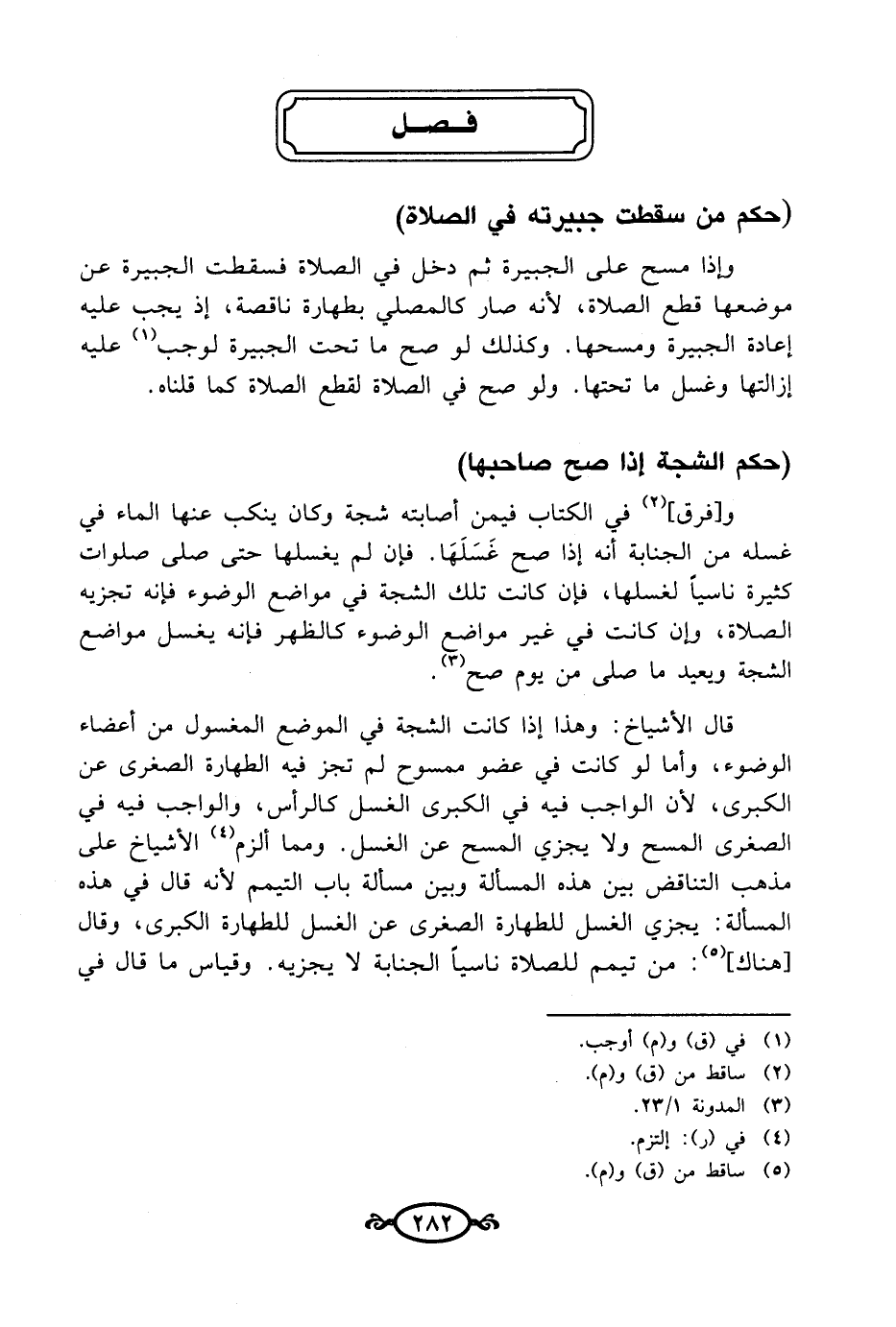 و [فرق] (¬2) في الكتاب فيمن أصابته شجة وكان ينكب عنها الماء في غسله من الجنابة أنه إذا صح غَسَلَهَا. فإن لم يغسلها حتى صلى صلوات كثيرة ناسيًا لغسلها، فإن كانت تلك الشجة في مواضع الوضوء فإنه تجزيه الصلاة، وإن كانت في غير مواضع الوضوء كالظهر فإنه يغسل مواضع الشجة ويعيد ما صلى من يوم صح (¬3).
