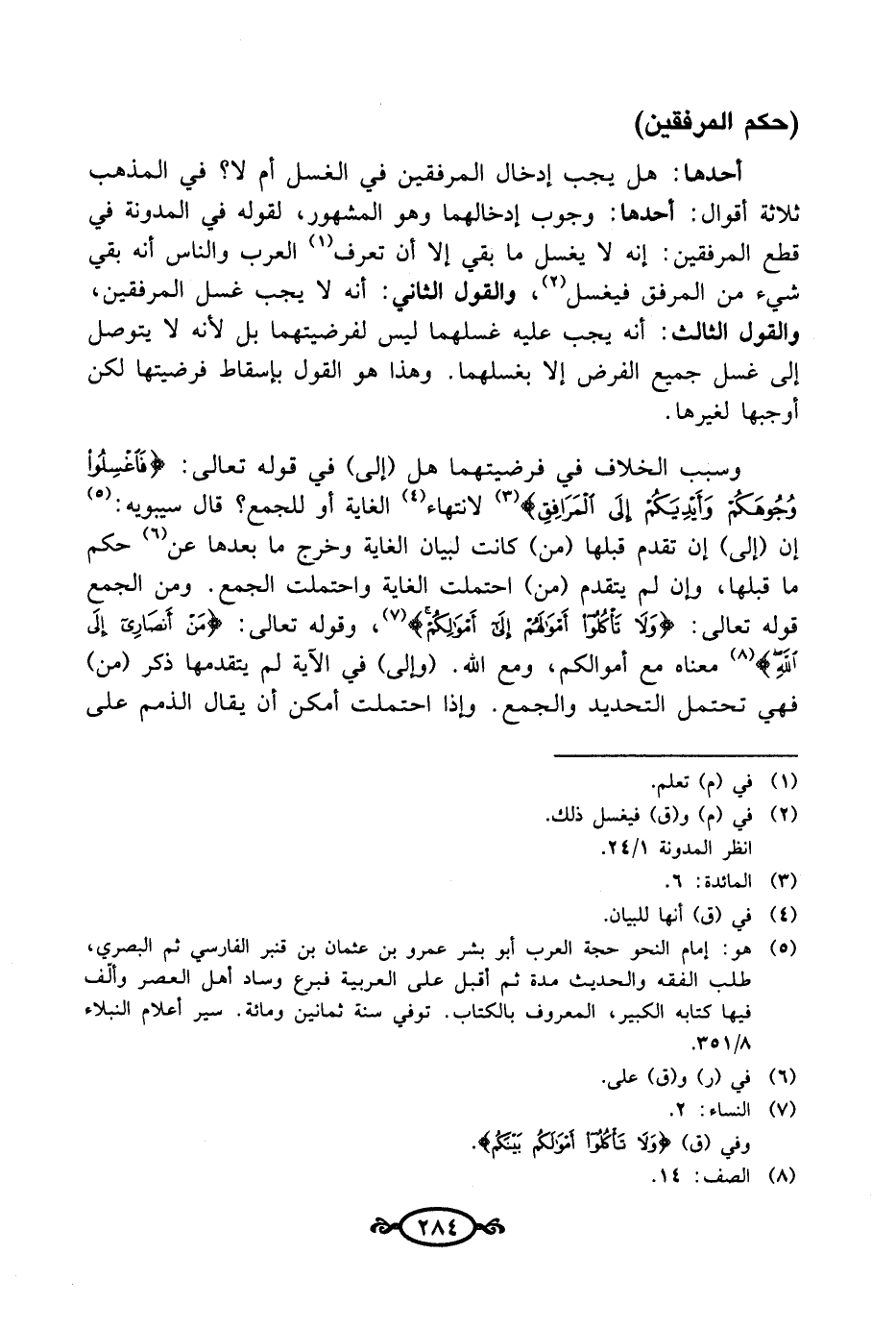 (¬5) هو: إمام النحو حجة العرب أبو بشر عمرو بن عثمان بن قنبر الفارسي ثم البصري، طلب الفقه والحديث مدة ثم أقبل على العربية فبرع وساد أهل العصر وألف فيها كتابه الكبير، المعروف بالكتاب. توفي سنة ثمانين ومائة. سير أعلام النبلاء 8/ 351.