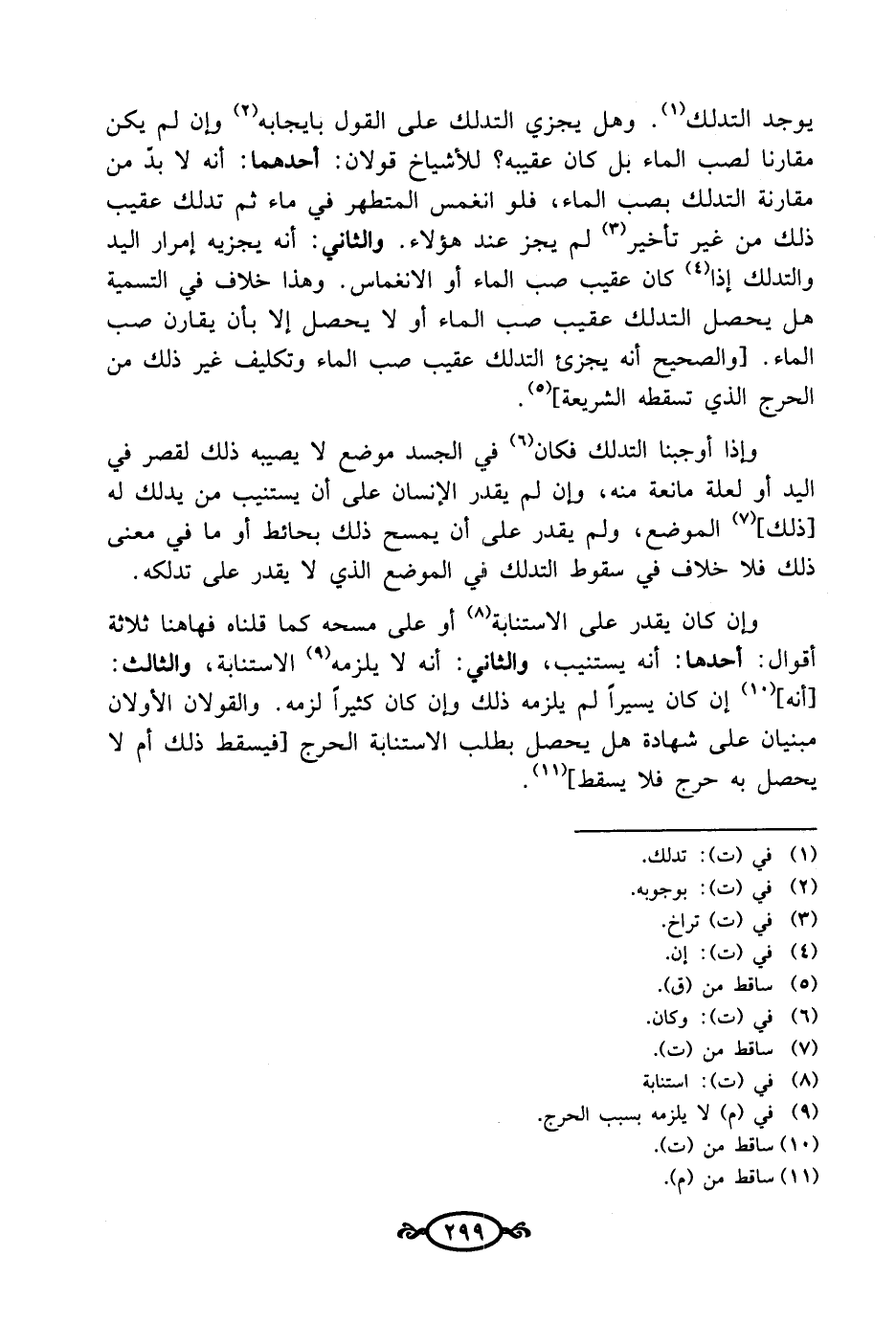 وإن كان يقدر على الاستنابة (¬8) أو على مسحه كما قلناه فهاهنا ثلاثة أقوال: أحدها: أنه يستنيب، والثاني: أنه لا يلزمه (¬9) الاستنابة، والثالث: [أنه] (¬10) إن كان يسيراً لم يلزمه ذلك وإن كان كثيراً لزمه. والقولان الأولان مبنيان على شهادة هل يحصل بطلب الاستنابة الحرج [فيسقط ذلك أم لا يحصل به حرج فلا يسقط] (¬11).