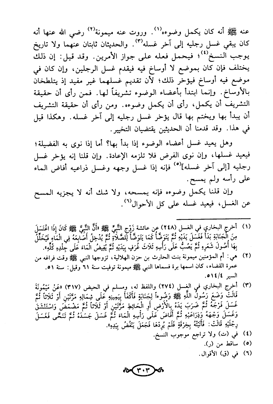 (¬1) أخرج البخاري في الغسل (248) عن عائشة زَوْج النَّبِيِّ - صلى الله عليه وسلم - "أَنَّ النَّبِيَّ - صلى الله عليه وسلم - كَانَ إِذَا اغْتَسَلَ مِنَ الجَنَابَةِ بَدَأ فَغَسَلَ يَدَيْهِ ثُمَّ يَتَوَضَّأُ كَمَا يَتَوَضَّأُ لِلصَّلاَةِ ثُمَّ يُدْخِلُ أَصَابِعَهُ في الْمَاءِ فَيُخَلِّلُ بِهَا أُصُولَ شَعَرِهِ ثُمَّ يَصُبُّ عَلَى رَأسِهِ ثَلاَثَ غُرَفٍ بِيَدَيْهِ ثُمَّ يُفِيضُ الْمَاءَ عَلَى جِلْدِهِ كُلِّهِ".