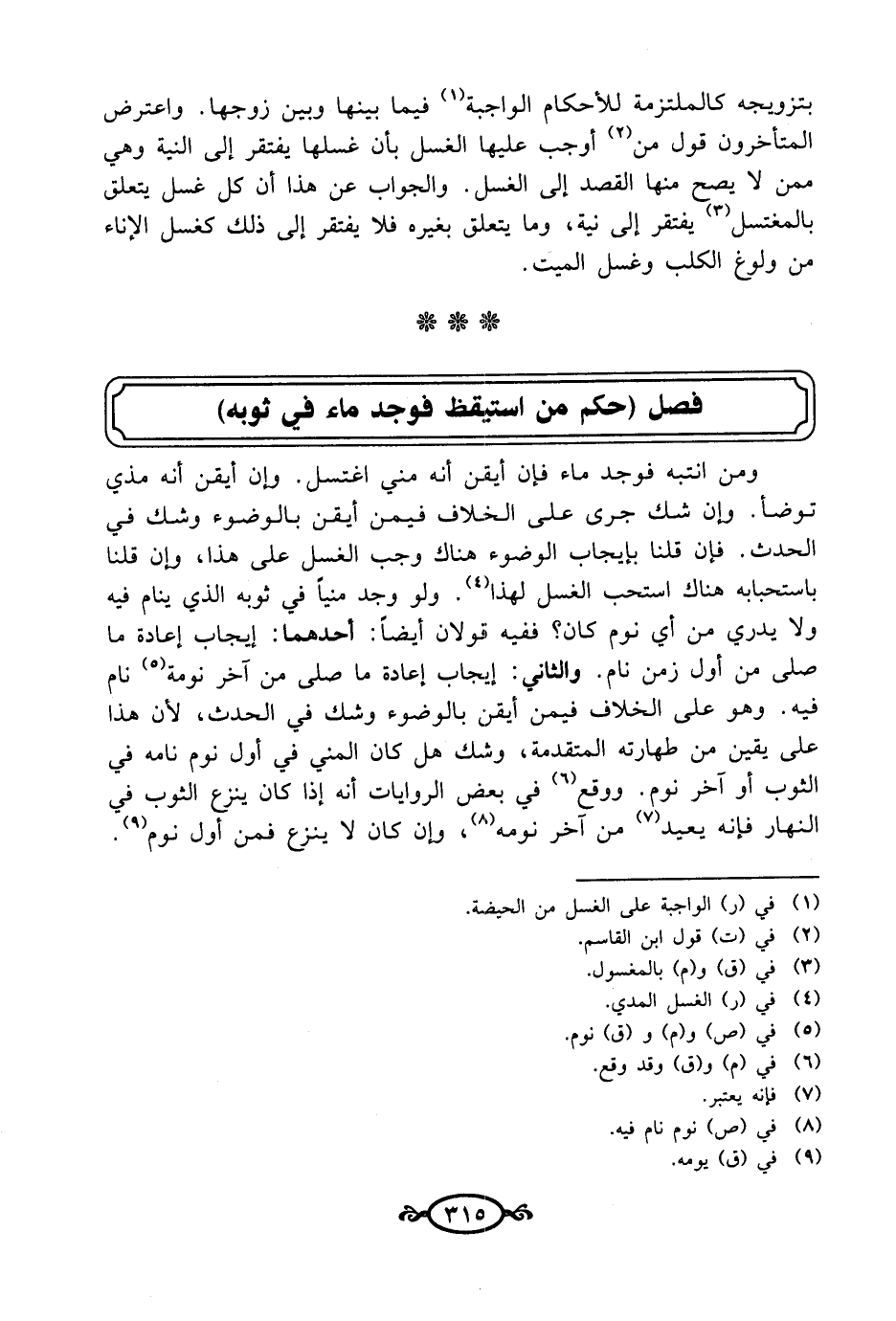 فصل (حكم من استيقظ فوجد ماء في ثوبه)