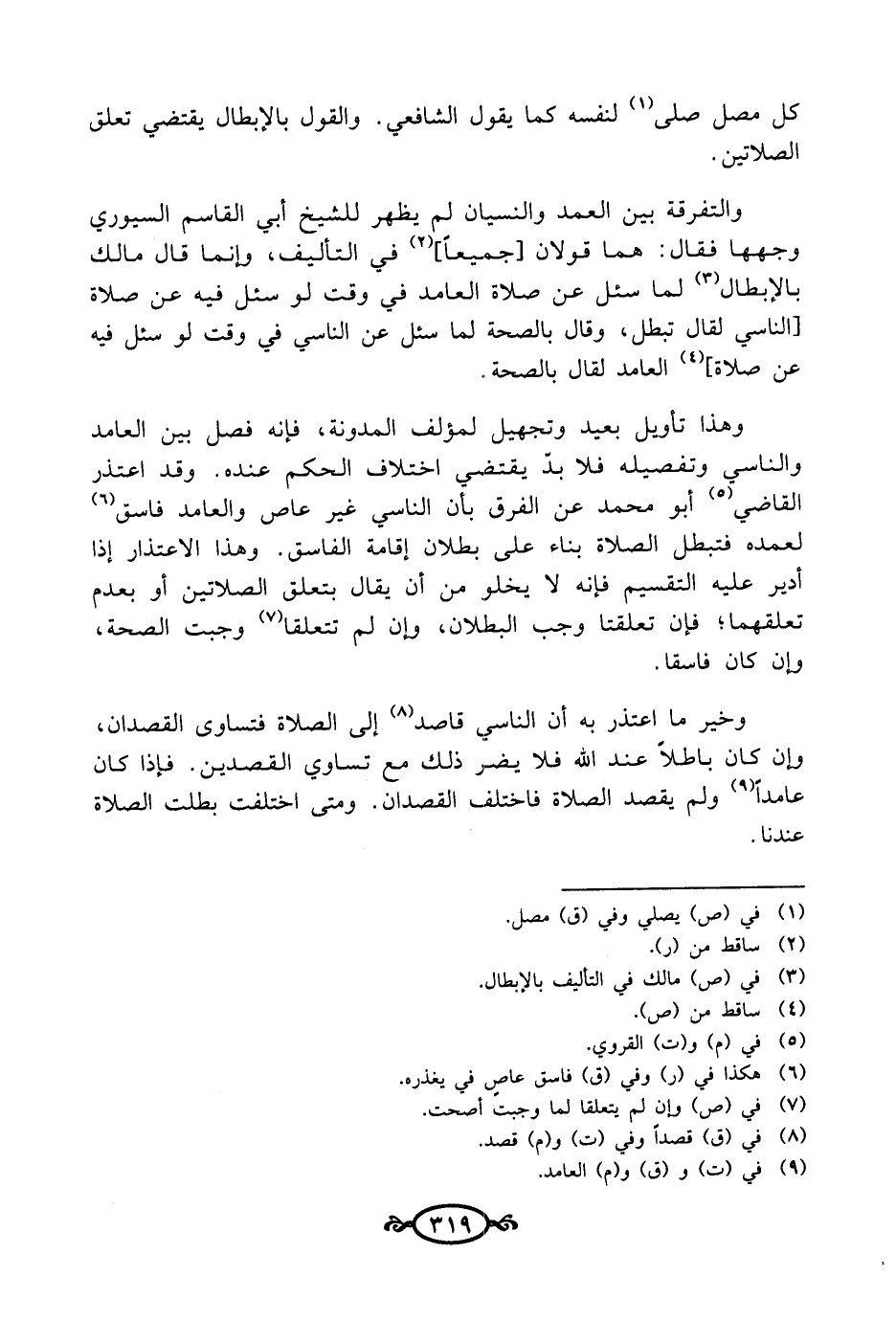 وخير ما اعتذر به أن الناسي، قاصد (¬8) إلى الصلاة فتساوى القصدان، وإن كان باطلاً عند الله فلا يضر ذلك مع تساوي القصدين. فإذا كان عامداً (¬9) ولم يقصد الصلاة فاختلف القصدان. ومتى اختلفت بطلت الصلاة عندنا.