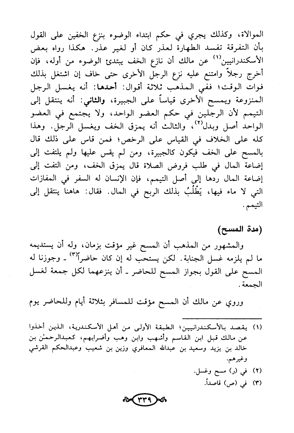 وروي عن مالك أن المسح مؤقت للمسافر بثلاثة أيام وللحاضر يوم