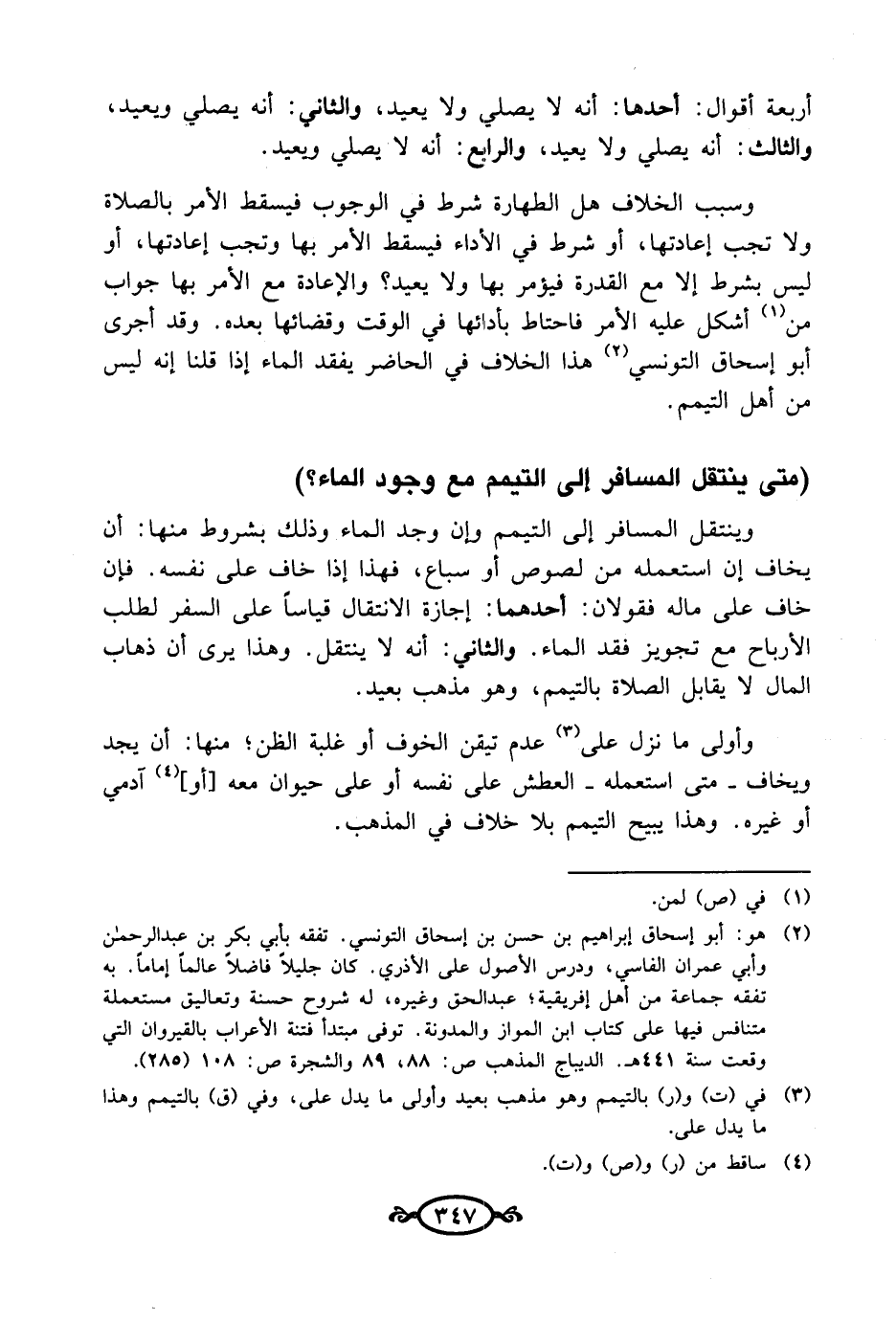 (¬3) في (ت) و (ر) بالتيمم وهو مذهب بعيد وأولى ما يدل على، وفي (ق) بالتيمم وهذا ما يدل على.