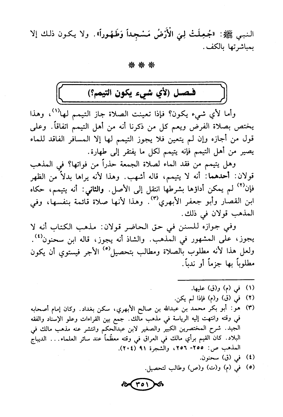 (¬3) هو: أبو بكر محمد بن عبد الله بن صالح الأبهري، سكن بغداد. وكان إمام أصحابه في وقته وانتهت إليه الرياسة في مذهب مالك. جمع بين القراءات وعلو الإسناد والفقه الجيد. شرح المختصرين الكبير والصغير لابن عبد الحكم وانتشر عنه مذهب مالك في البلاد. كان القيم برأي مالك في العراق في وقته معظّمًا عند سائر العلماء ... الديباج المذهب ص: 255 - 256، والشجية 91 (204).