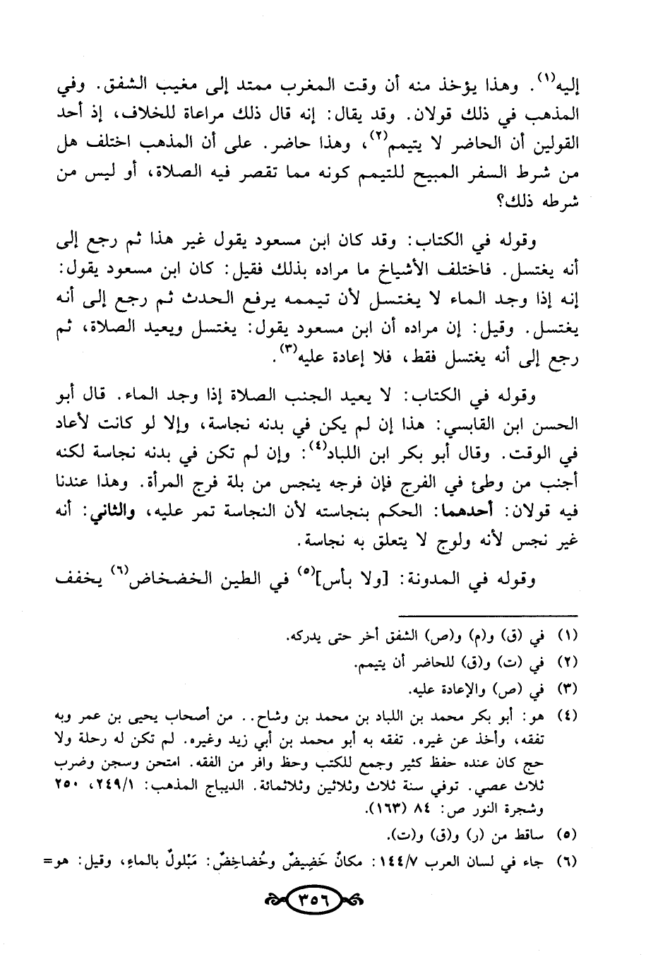 (¬4) هو: أبو بكر محمد بن اللباد بن محمد بن وشاح .. من أصحاب يحيى بن عمر وبه تفقه، وأخذ عن غيره. تفقه به أبو محمد بن أبي زيد وغيره. لم تكن له رحلة ولا حج كان عنده حفظ كثير وجمع للكتب وحظ وافر من الفقه. امتحن وسجن وضرب ثلاث عصي. توفي سنة ثلاث وثلاثين وثلاثمائة. الديباج المذهب: 1/ 249، 250 وشجرة النور ص: 84 (163).