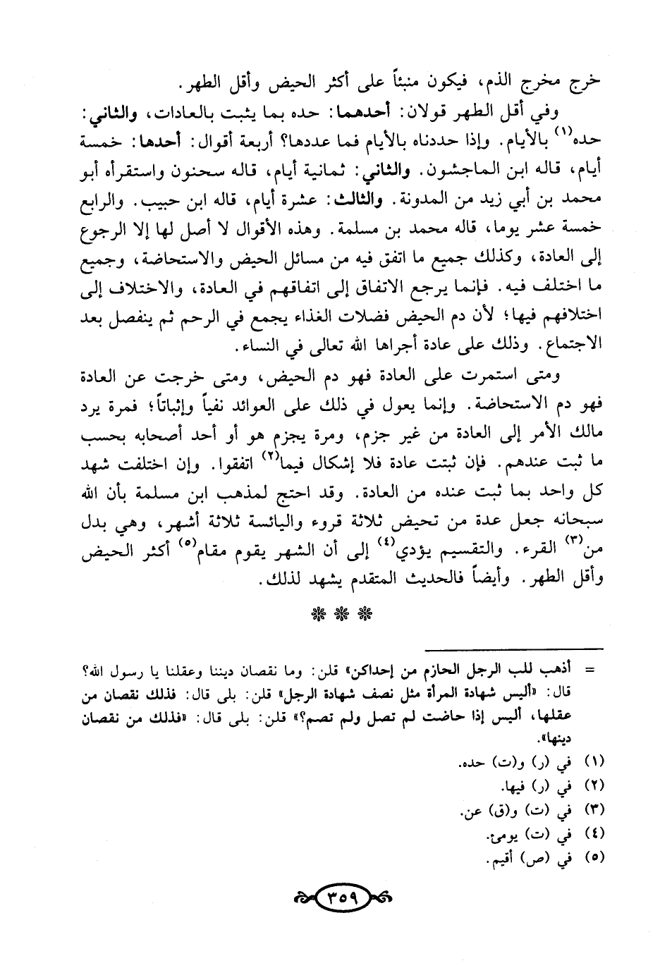 = أذهب للب الرجل الحازم من إحداكن" قلن: وما نقصان ديننا وعقلنا يا رسول الله؟ قال: "أليس شهادة المرأة مثل نصف شهادة الرجل" قلن: بلى قال: فذلك نقصان من عقلها، أليس إذا حاضت لم تصل ولم تصم؟ " قلن: بلى قال: "فذلك من نقصان دينها".