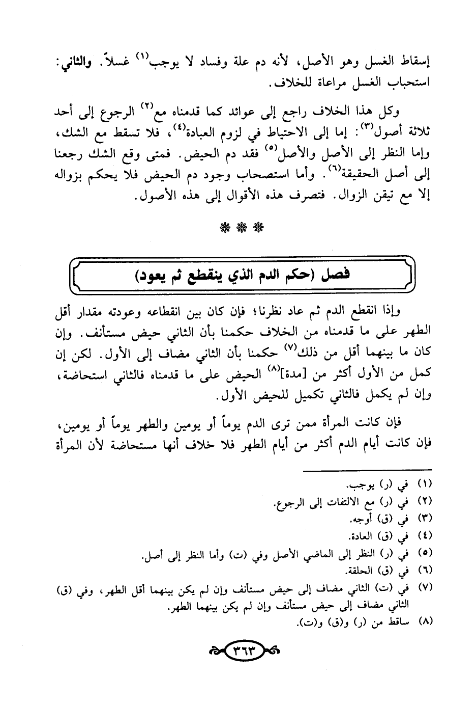 فصل (حكم الدم الذي ينقطع ثم يعود)