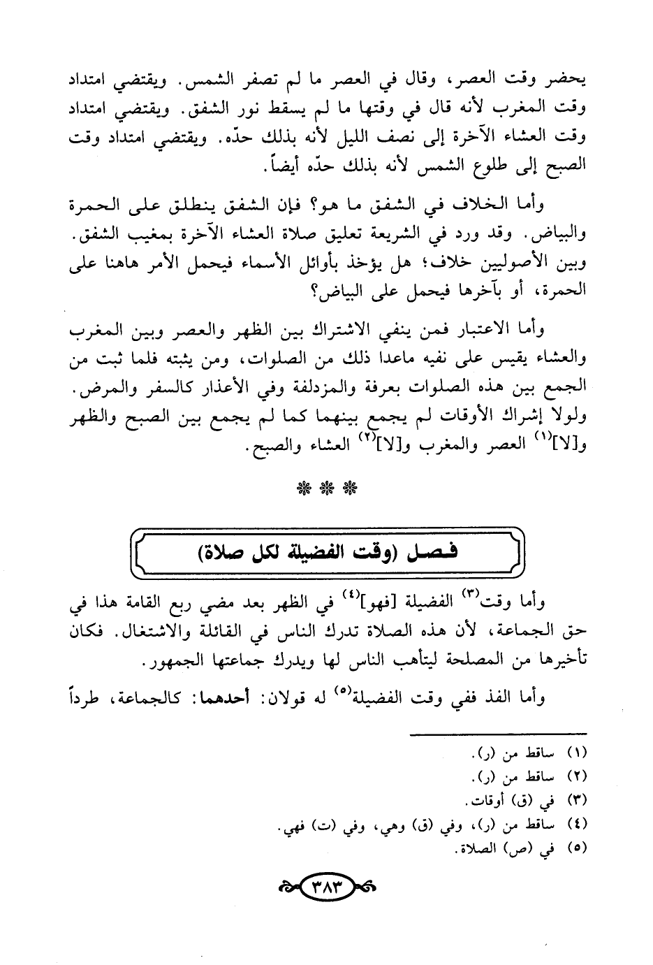 فصل (وقت الفضيلة لكل صلاة)