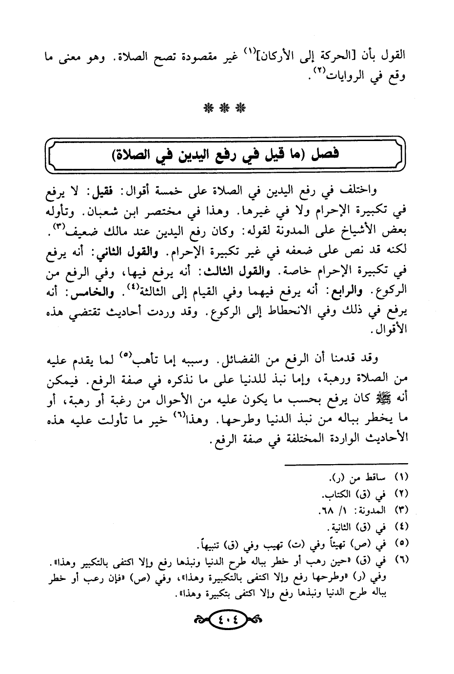 فصل (ما قيل في رفع اليدين في الصلاة)