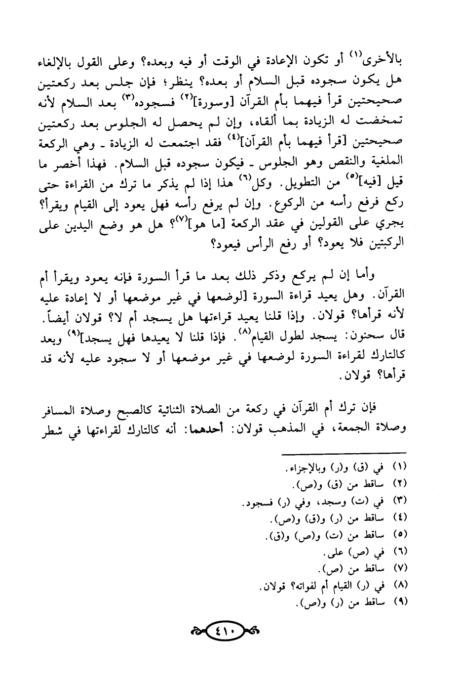 بالأخرى (¬1) أو تكون الإعادة في الوقت أو فيه وبعده؟ وعلى القول بالإلغاء هل يكون سجوده قبل السلام أو بعده؟ ينظر؛ فإن جلس بعد ركعتين صحيحتين قرأ فيهما بأم القرآن [وسورة] (¬2) فسجوده (¬3) بعد السلام لأنه تمخضت له الزيادة بما ألقاه، وإن لم يحصل له الجلوس بعد ركعتين صحيحتين [قرأ فيهما بأم القرآن] (¬4) فقد اجتمعت له الزيادة- وهي الركعة الملغية والنقص وهو الجلوس- فيكون سجوده قبل السلام. فهذا أخصر ما قيل [فيه] (¬5) من التطويل. وكل (¬6) هذا إذا لم يذكر ما ترك من القراءة حتى ركع فرفع رأسه من الركوع. وإن لم يرفع رأسه فهل يعود إلى القيام ويقرأ؟ يجري على القولين في عقد الركعة [ما هو] (¬7)؟ هل هو وضع اليدين على الركبتين فلا يعود؟ أو رفع الرأس فيعود؟