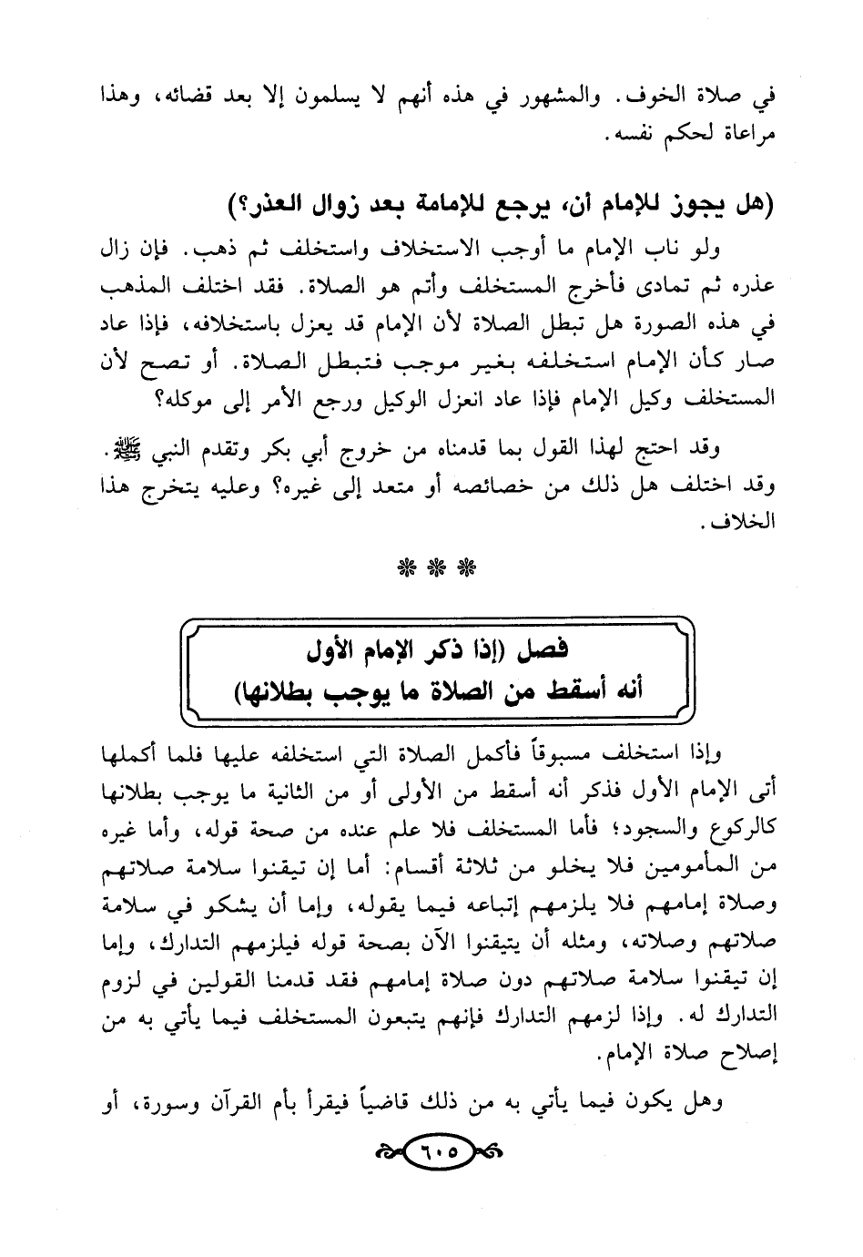 (هل يجوز لإمام أن، يرجع للإمامة بعد زوال العذر؟)