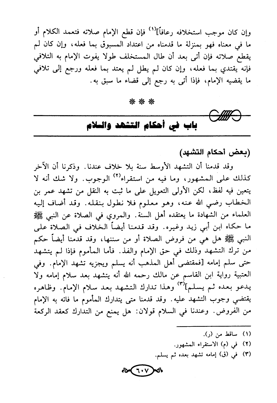 باب في أحكام التشهد والسلام