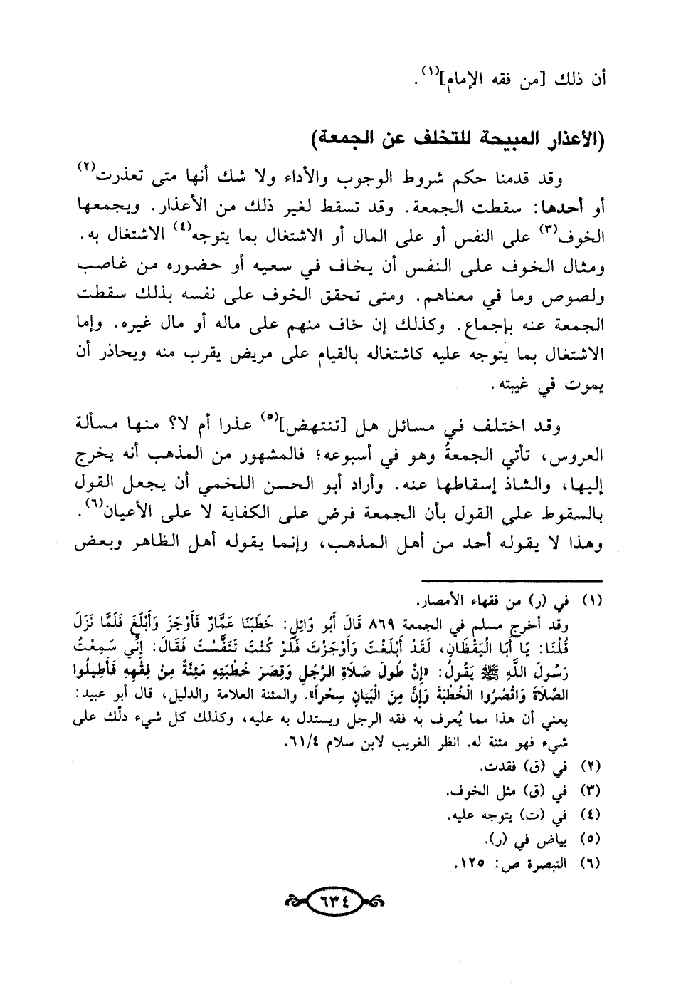(الأعذار المبيحة للتخلف عن الجمعة)