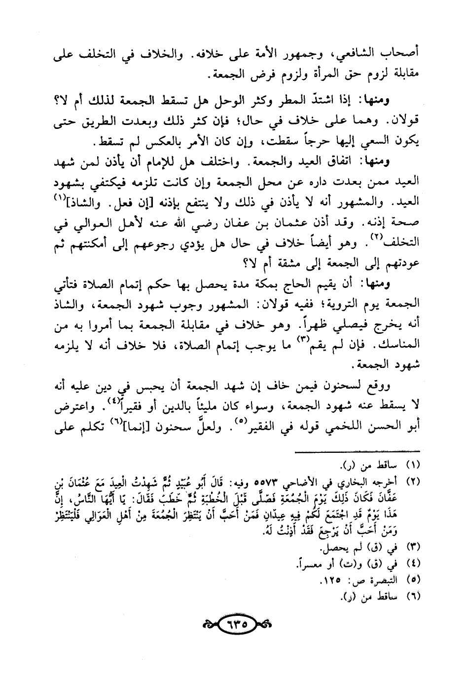 أصحاب الشافعي، وجمهور الأمة على خلافه. والخلاف في التخلف على مقابلة لزوم حق المرأة ولزوم فرض الجمعة.
