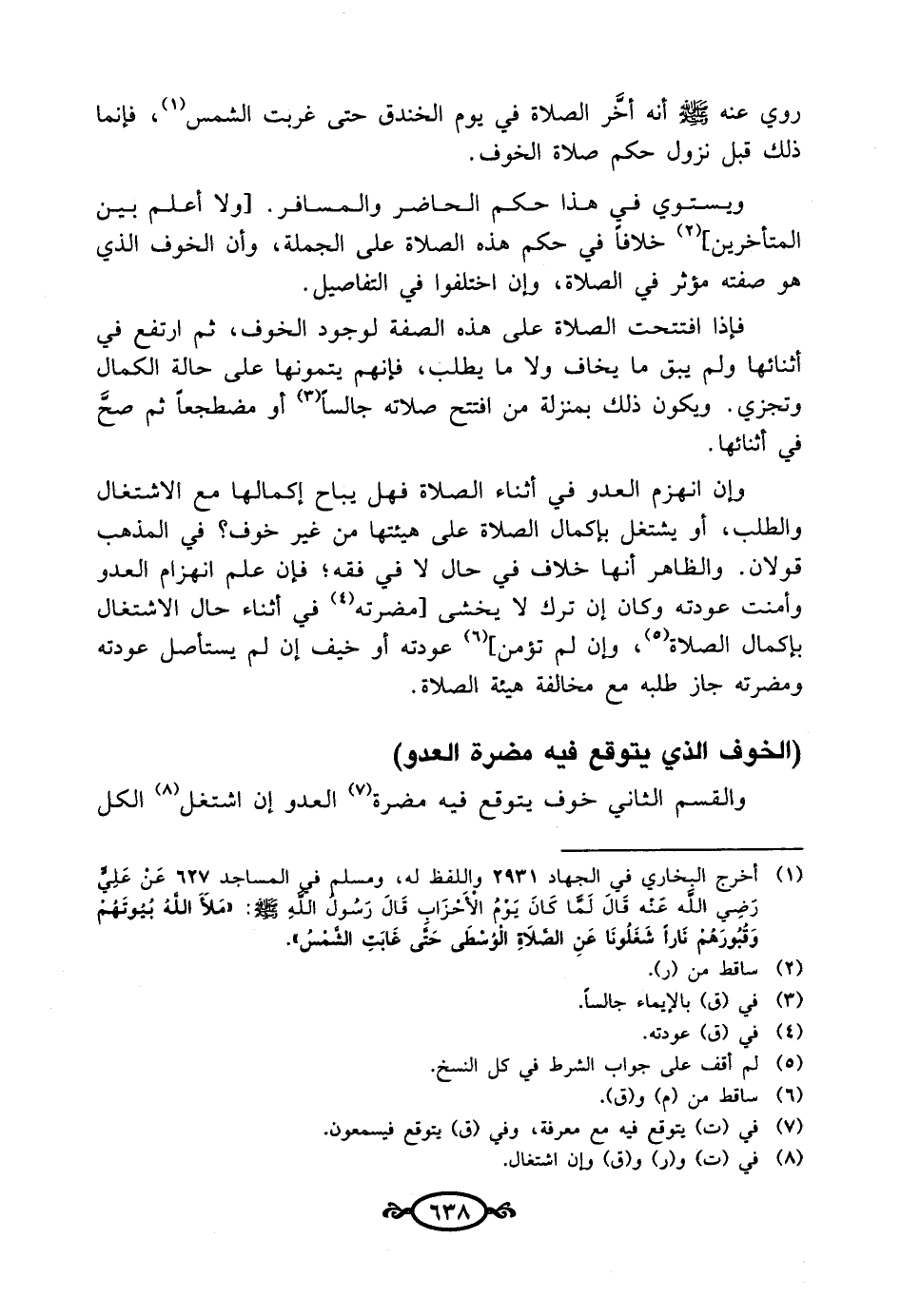 والقسم الثاني خوف يتوقع فيه مضرة (¬7) العدو إن اشتغل (¬8) الكل