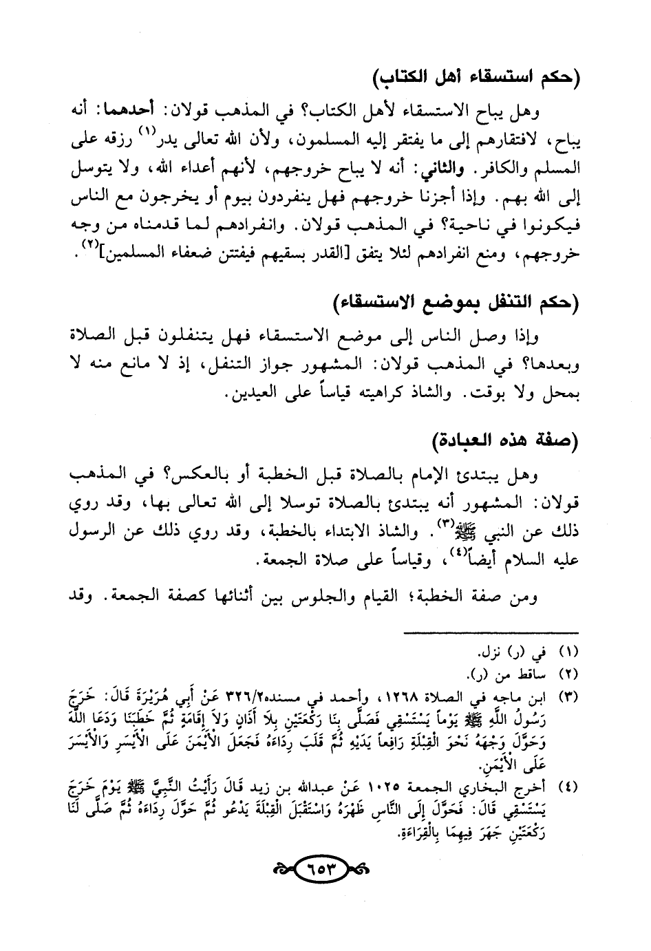 (¬4) أخرج البخاري الجمعة 1025 عَنْ عبد الله بن زيد قَالَ رَأَيْتُ النَّبِيَّ - صلى الله عليه وسلم -يَوْمَ خَرَجَ يَستْسقِى قَاَلَ: فَحَوَّلَ إلَى النَّاسِ ظّهْرَهُ وَاسْتَقْبَلَ الْقِبْلَةَ يَدْعُو ثُمَّ حَوَّل رِدَاءهُ ثُمَّ صَلَّى لَنَا رَكْعَتَيْنِ جَهَرَ فِيِهِمَا بِاْلِقَراءِة.
