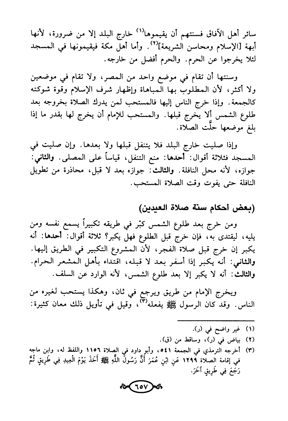 (¬3) أخرجه الترمذي في الجمعة 541، وأبو داود في الصلاة 1156 واللفظ له، وابن ماجه في إقامة الصلاة 1299 عَنِ ابن عُمَرَ أَنَّ رَسُولَ الله صلى الله عليه وسلم -أَخَذَ يَوْمَ الْعِيدِ في طَرِيقٍ ثُمَّ رَجَعَ في طَرِيقٍ آخَرَ.