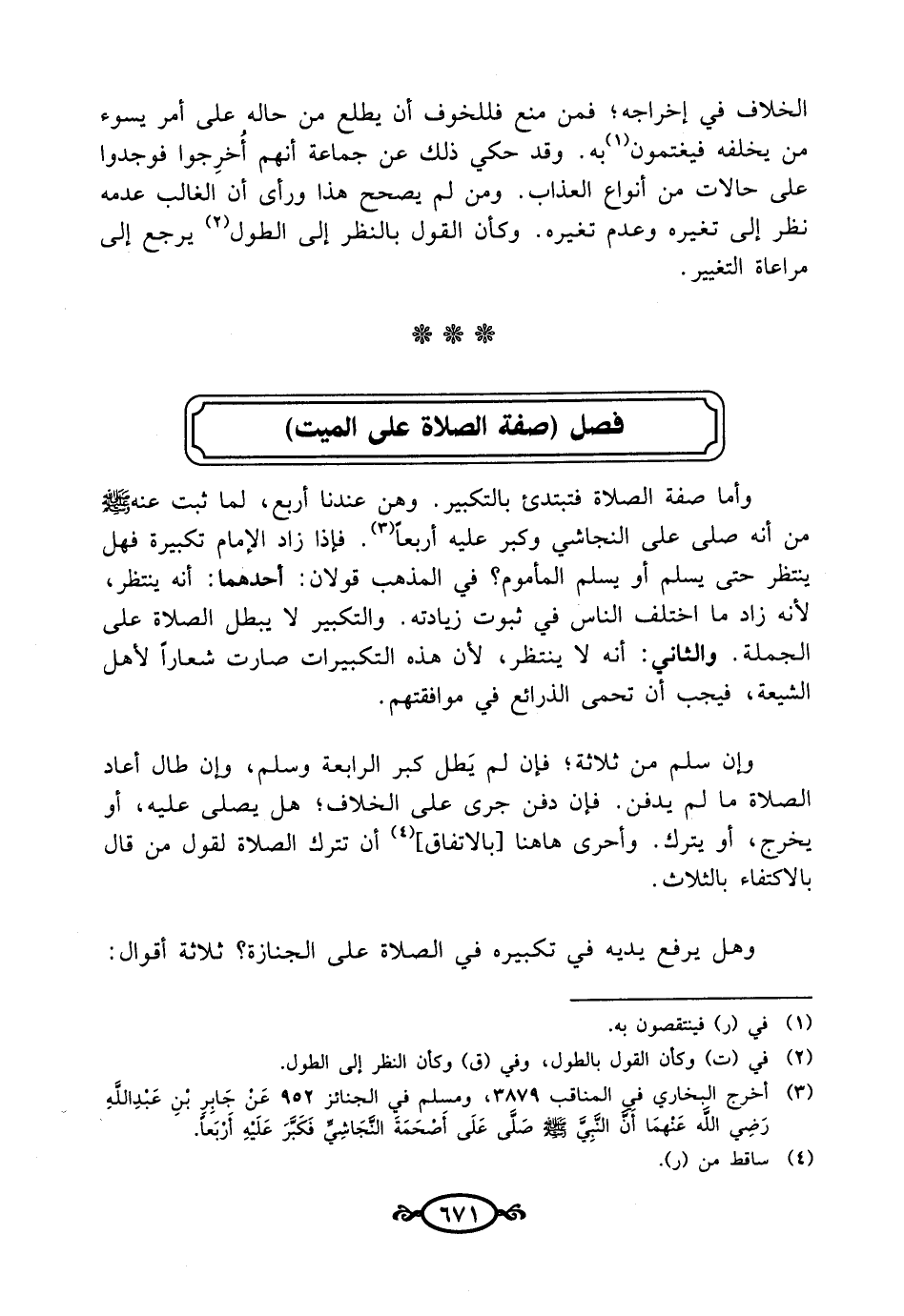(¬3) أخرج البخاري في المناقب 3879، ومسلم في الجنائز 952 عَنْ جَابِر بْنِ عَبْدِ الله رَضِي الله عَنْهما أَنَ النَّبِيَّ صلى الله عليه وسلم-صَلَّى عَلَى أَصحَمَةَ النَّجَاشِيِّ فَكَبَّرَ عَلَيْهِ أَرْبَعاً.