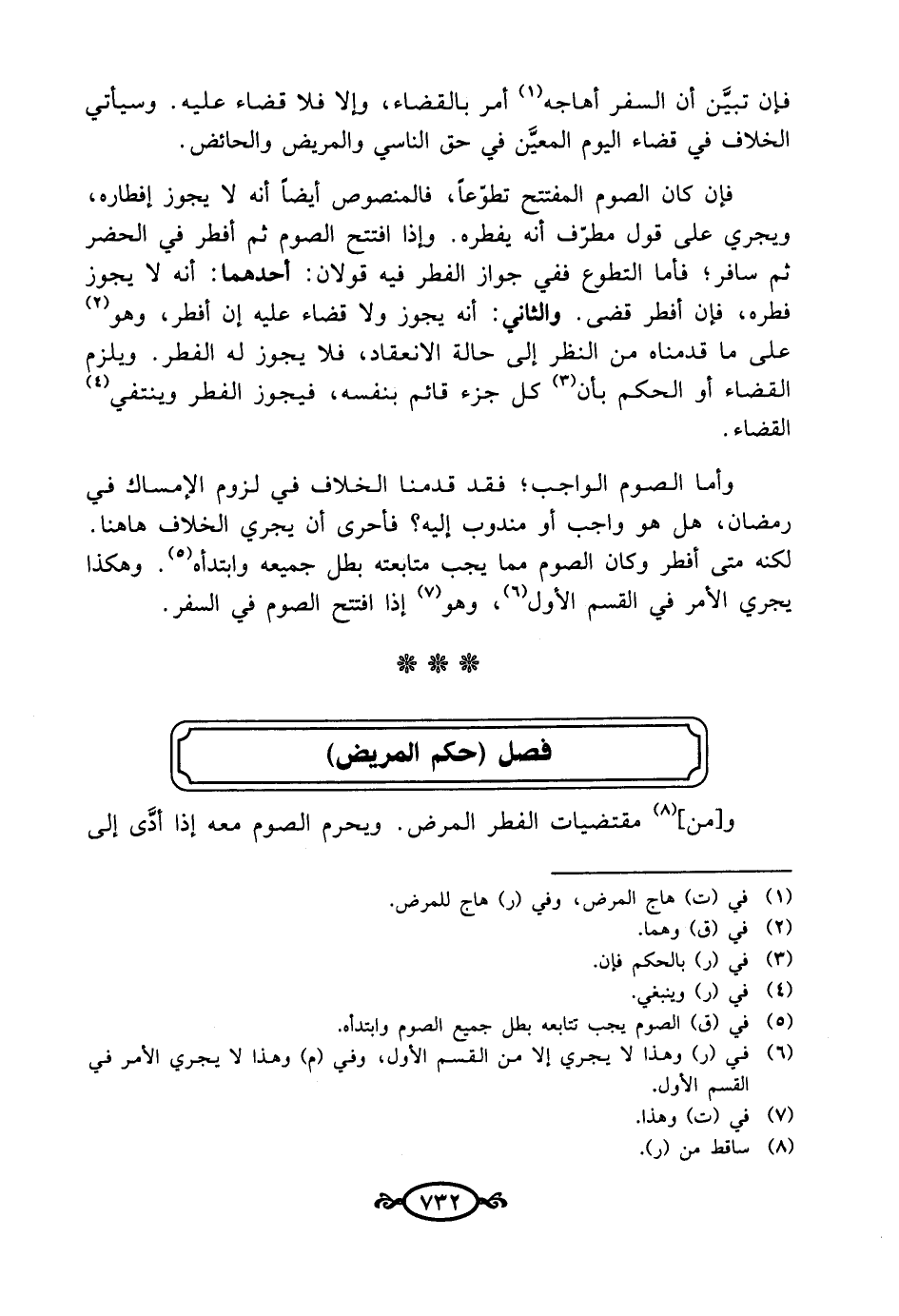 و [من] (¬8) مقتضيات الفطر المرض. ويحرم الصوم معه إذا أدَّى إلى