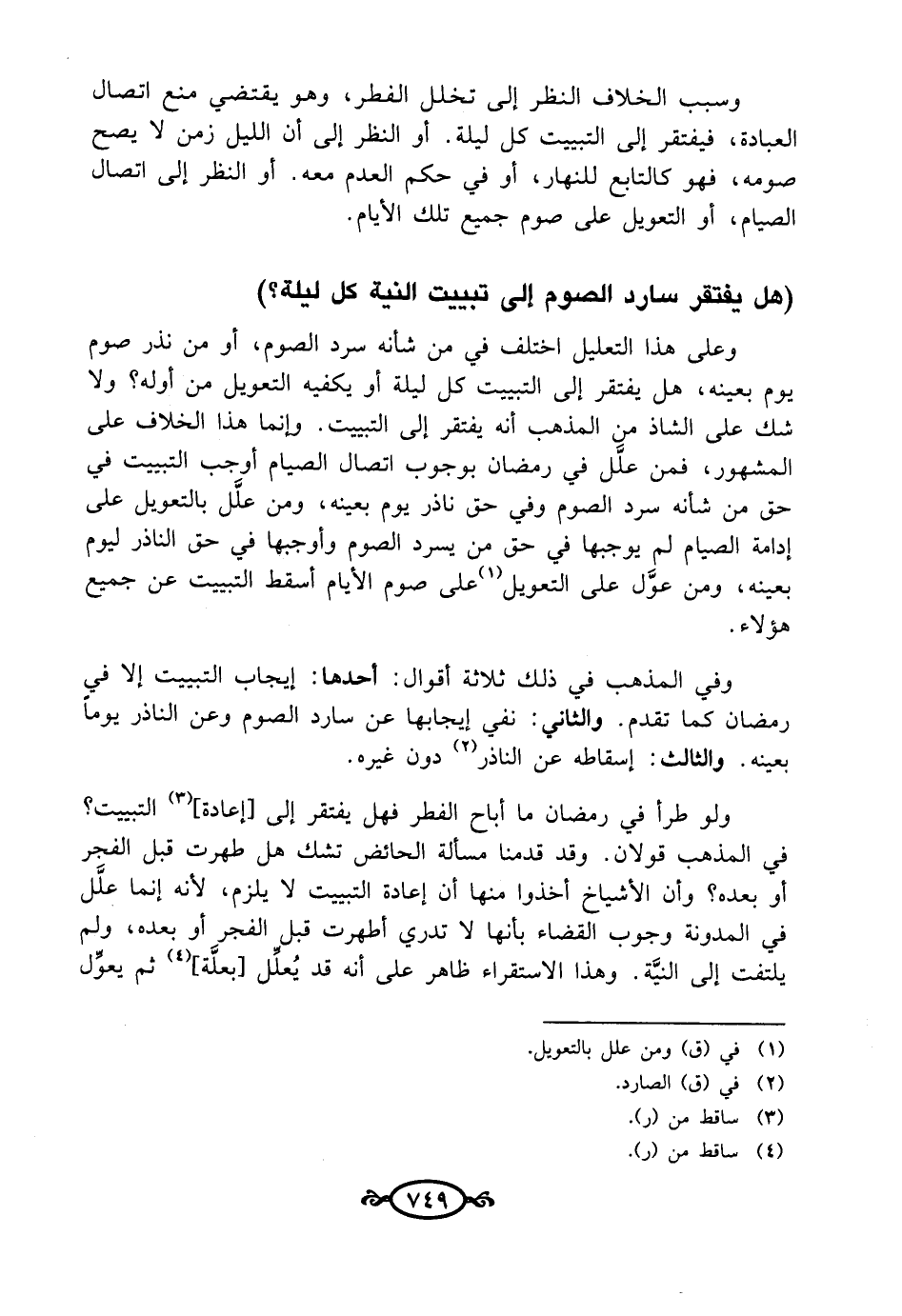 ولو طرأ في رمضان ما أباح الفطر فهل يفتقر إلى [إعادة] (¬3) التبييت؟ في المذهب قولان. وقد قدمنا مسألة الحائض تشك هل طهرت قبل الفجر أو بعده؟ وأن الأشياخ أخذوا منها أن إعادة التبييت لا يلزم، لأنه إنما علَّل في المدونة وجوب القضاء بأنها لا تدري أطهرت قبل الفجر أو بعده، ولم يلتفت إلى النيَّة. وهذا الاستقراء ظاهر على أنه قد يُعلِّل [بعلَّة] (¬4) ثم يعوِّل
