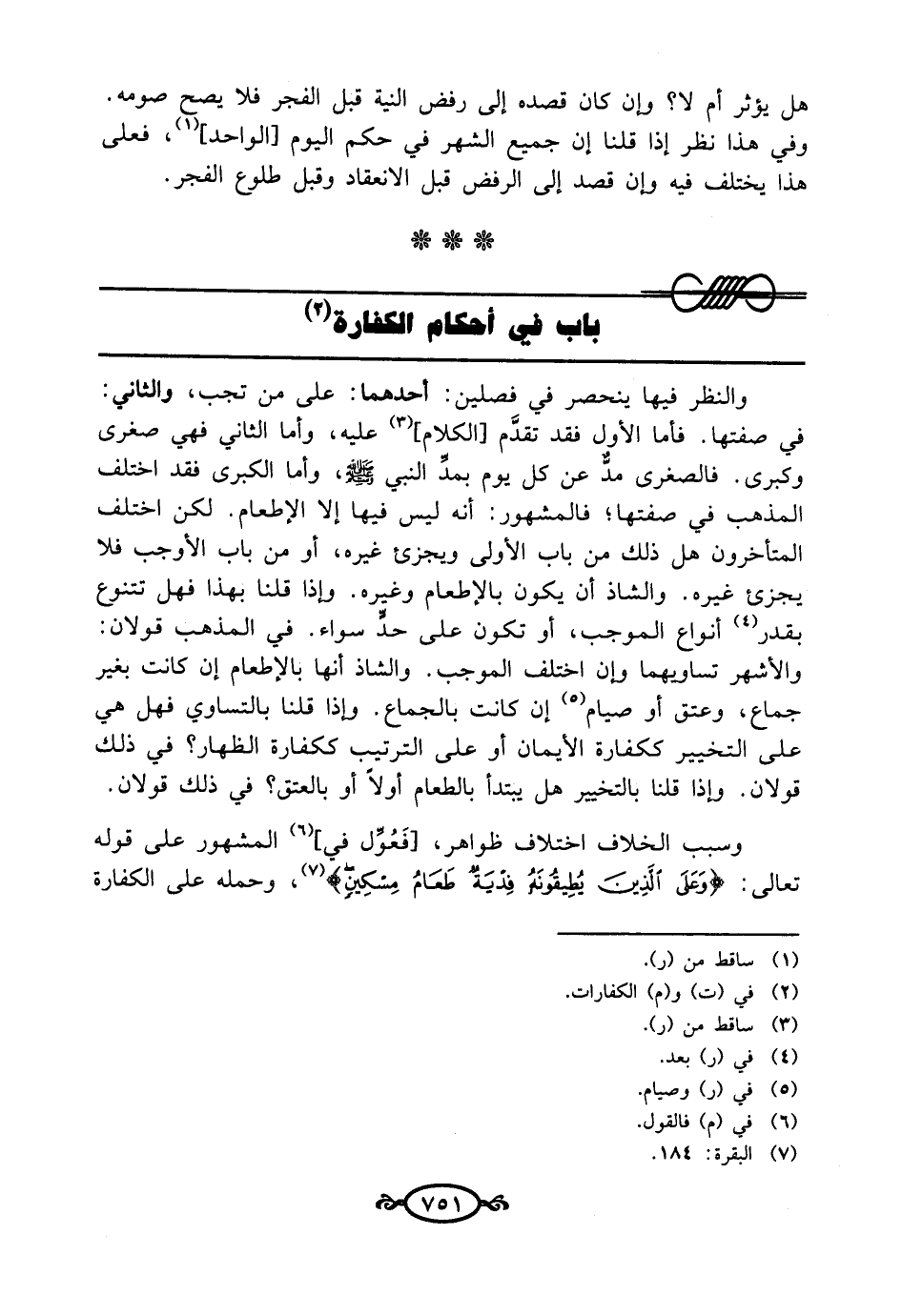 باب في أحكام الكفارة (¬2)