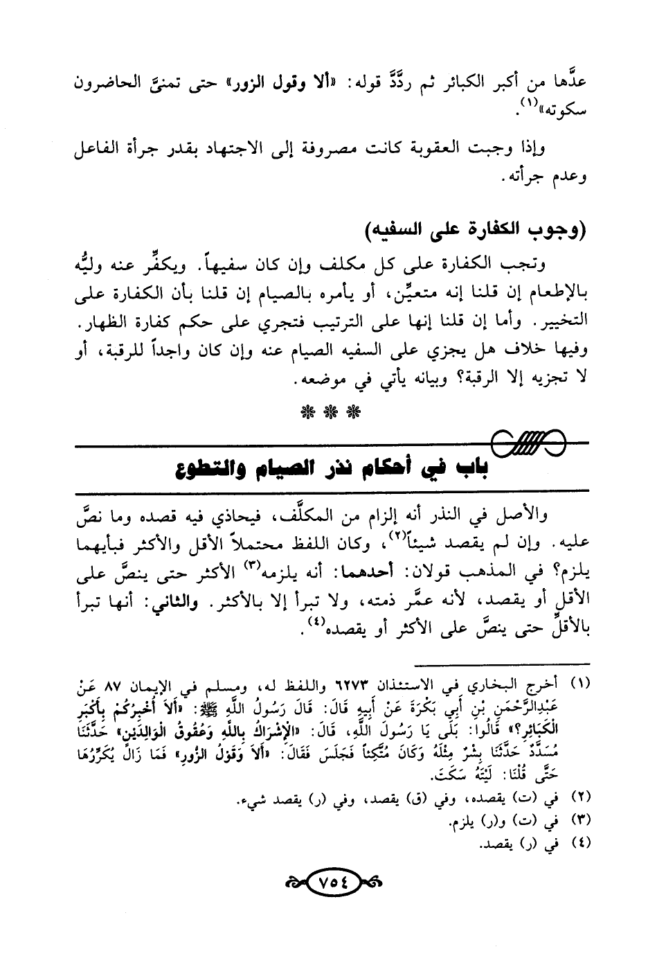 باب في أحكام نذر الصيام والتطوع
