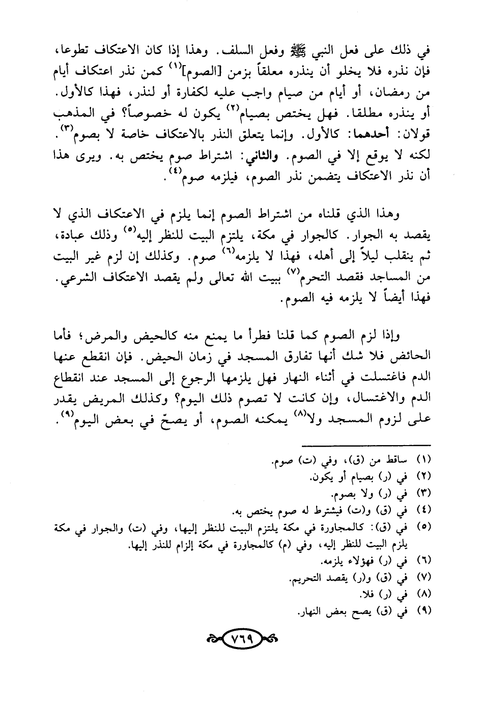 وهذا الذي قلناه من اشتراط الصوم إنما يلزم في الاعتكاف الذي لا يقصد به الجوار. كالجوار في مكة، يلتزم البيت للنظر إليه (¬5) وذلك عبادة، ثم ينقلب ليلًا إلى أهله، فهذا لا يلزمه (¬6) صوم. وكذلك إن لزم غير البيت من المساجد فقصد التحرم (¬7) ببيت الله تعالى ولم يقصد الاعتكاف الشرعي. فهذا أيضًا لا يلزمه فيه الصوم.