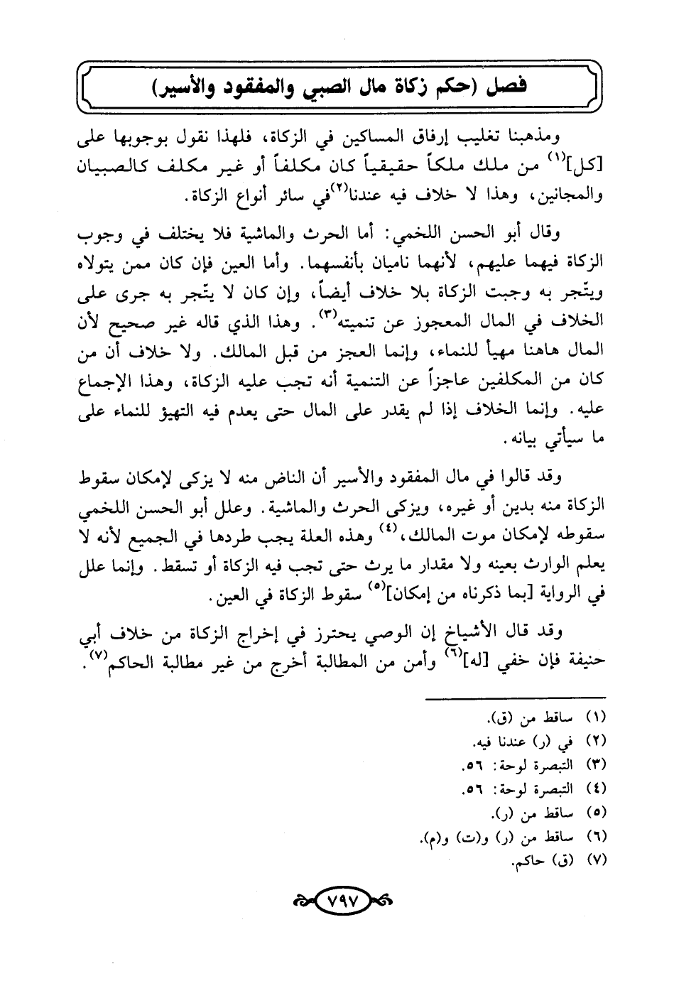 فصل (حكم زكاة مال الصبي والمفقود والأسير)