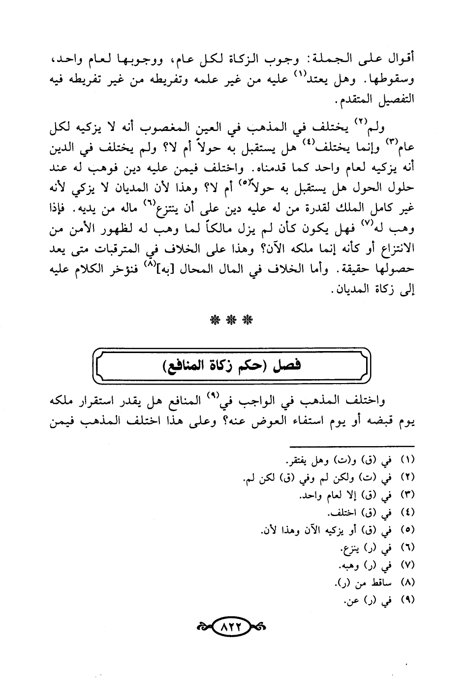 فصل (حكم زكاة المنافع)