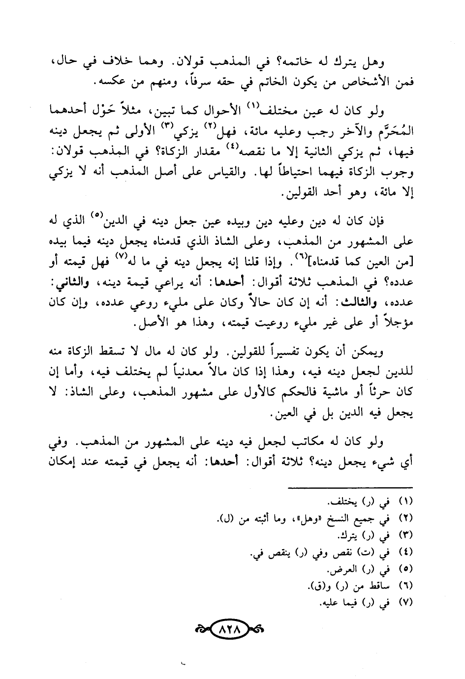 ويمكن أن يكون تفسيرًا للقولين. ولو كان له مال لا تسقط الزكاة منه للدين لجعل دينه فيه، وهذا إذا كان مالًا معدنيًا لم يختلف فيه، وأما إن كان حرثًا أو ماشية فالحكم كالأول على مشهور المذهب، وعلى الشاذ: لا يجعل فيه الدين بل في العين.