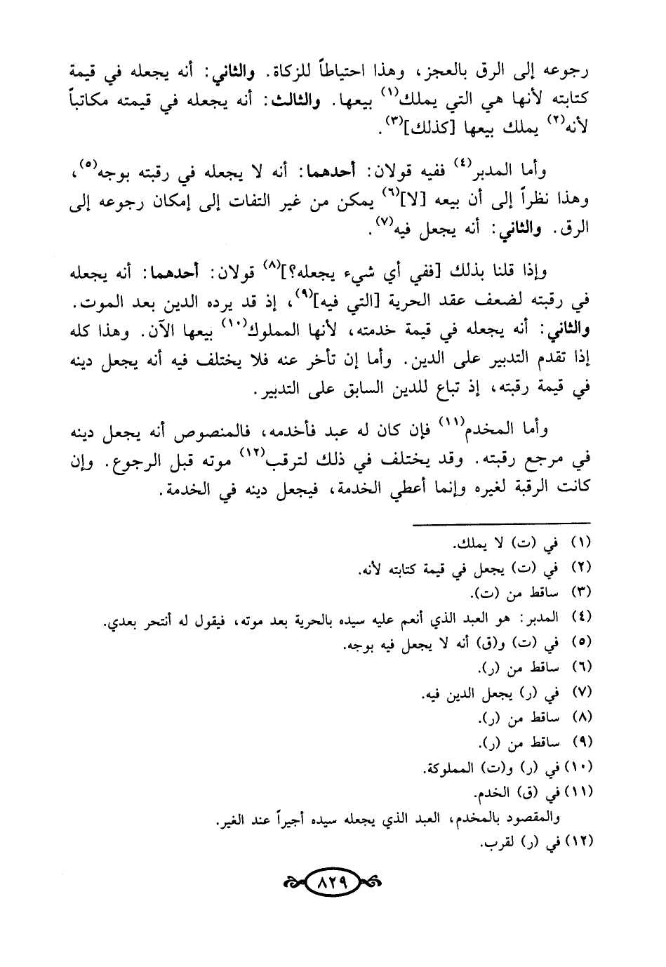 (¬4) المدبر: هو العبد الذي أنعم عليه سيده بالحرية بعد موته، فيقول له أنتحر بعدي.