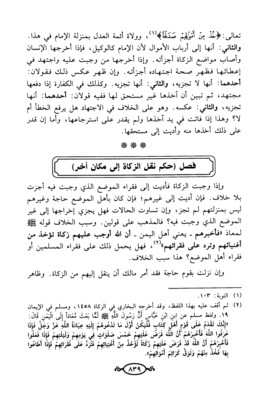 فصل (حكم نقل الزكاة إلى مكان آخر)