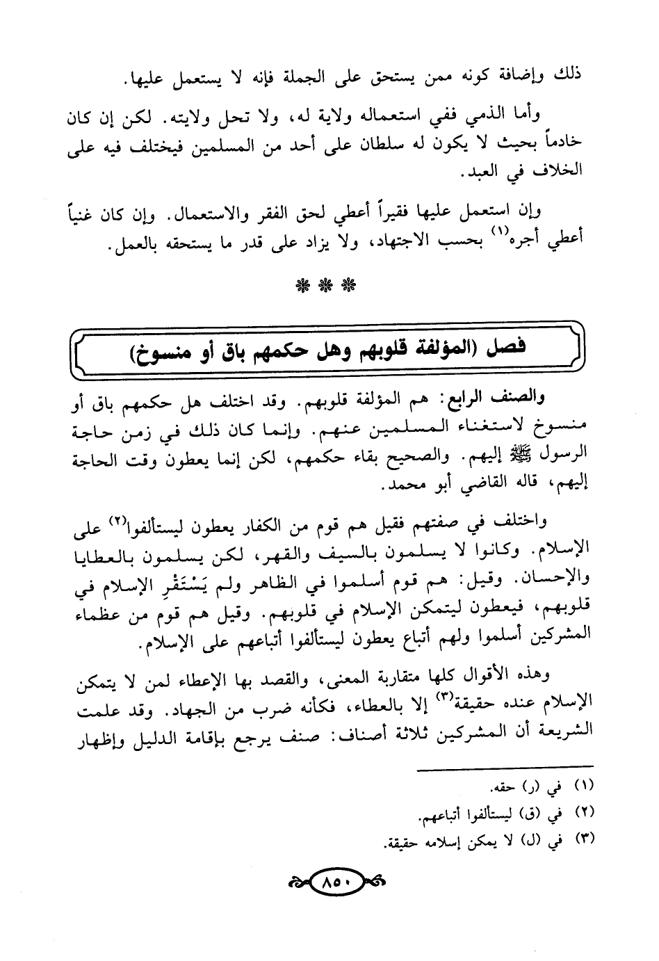 فصل (المؤلفة قلوبهم وهل حكمهم باق أو منسوخ)