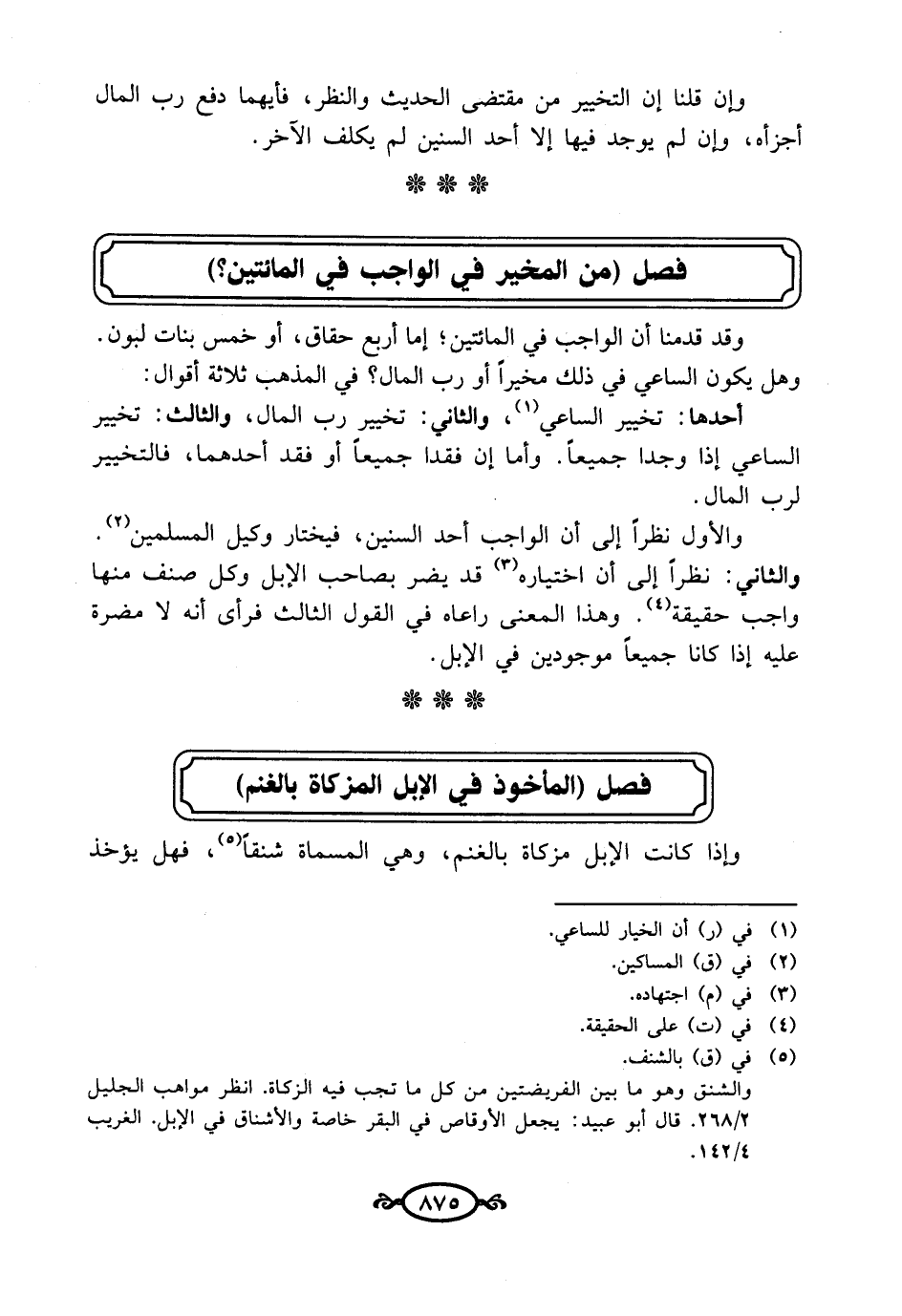 والأول نظرًا إلى أن الواجب أحد السنين، فيختار وكيل المسلمين (¬2). والثاني: نظرًا إلى أن اختياره (¬3) قد يضر بصاحب الإبل وكل صنف منها واجب حقيقة (¬4). وهذا المعنى راعاه في القول الثالث فرأى أنه لا مضرة عليه إذا كانا جميعاً موجودين في الإبل.