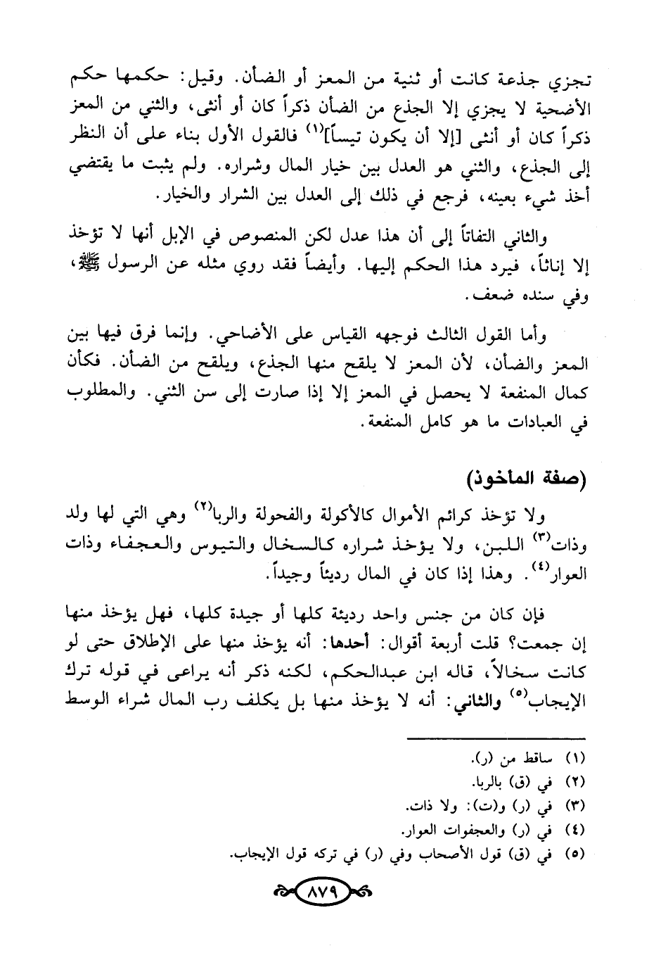 ولا تؤخذ كرائم الأموال كالأكولة والفحولة والربا (¬2) وهي التي لها ولد وذات (¬3) اللبن، ولا يؤخذ شراره كالسخال والتيوس والعجفاء وذات العوار (¬4). وهذا إذا كان في المال رديئًا وجيدًا.