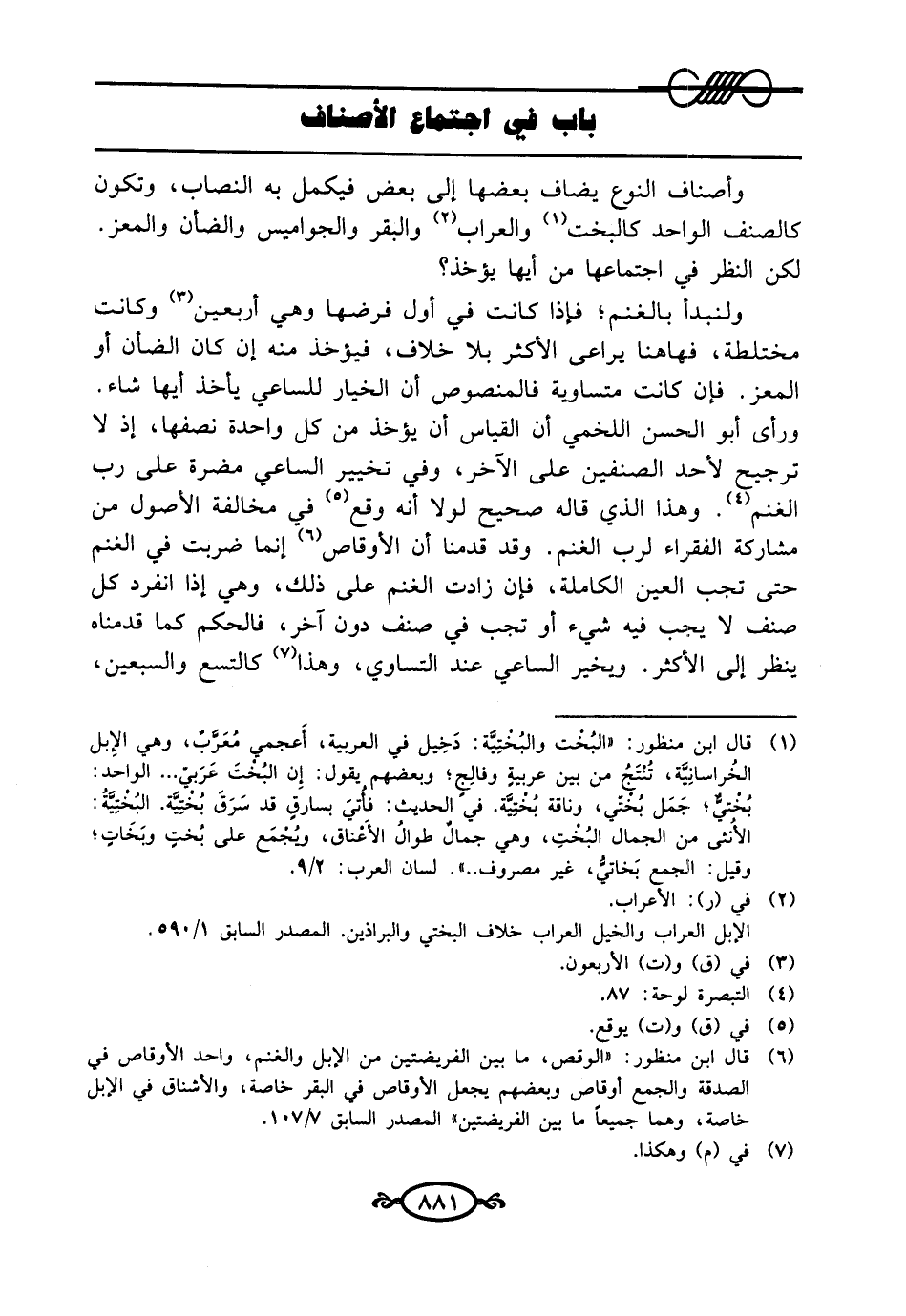 (¬6) قال ابن منظور: "الوقص، ما بين الفريضتين من الإبل والغنم، واحد الأوقاص في الصدقة والجمع أوقاص وبعضهم يجعل الأوقاص في البقر خاصة، والأشناق في الإبل خاصة، وهما جميعاً ما بين الفريضتين" المصدر السابق 7/ 107.