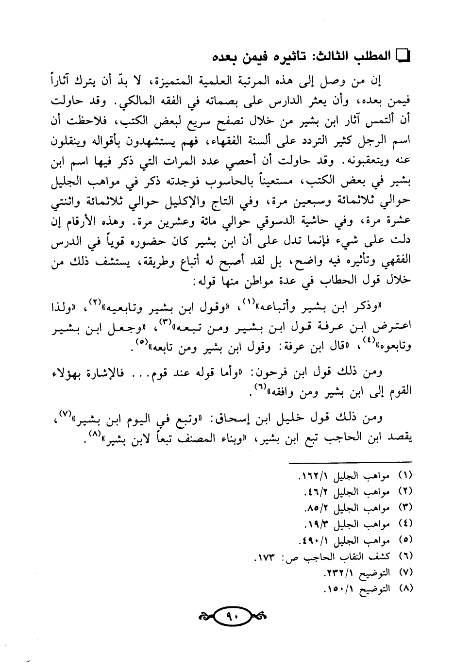 ومن ذلك قول خليل ابن إسحاق: "وتبع في اليوم ابن بشير" (¬7)، يقصد ابن الحاجب تبع ابن بشير، "وبناء المصنف تبعًا لابن بشير" (¬8).